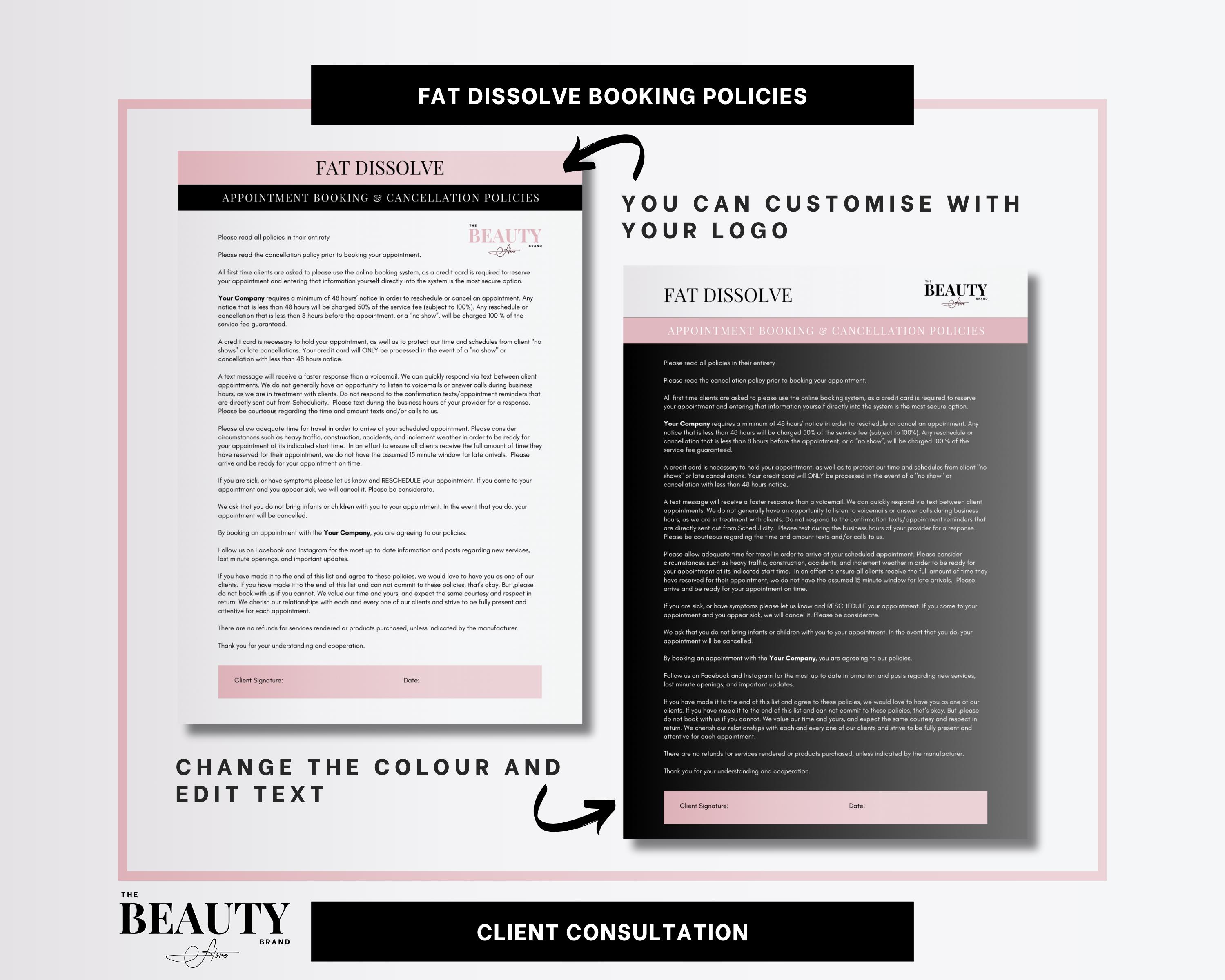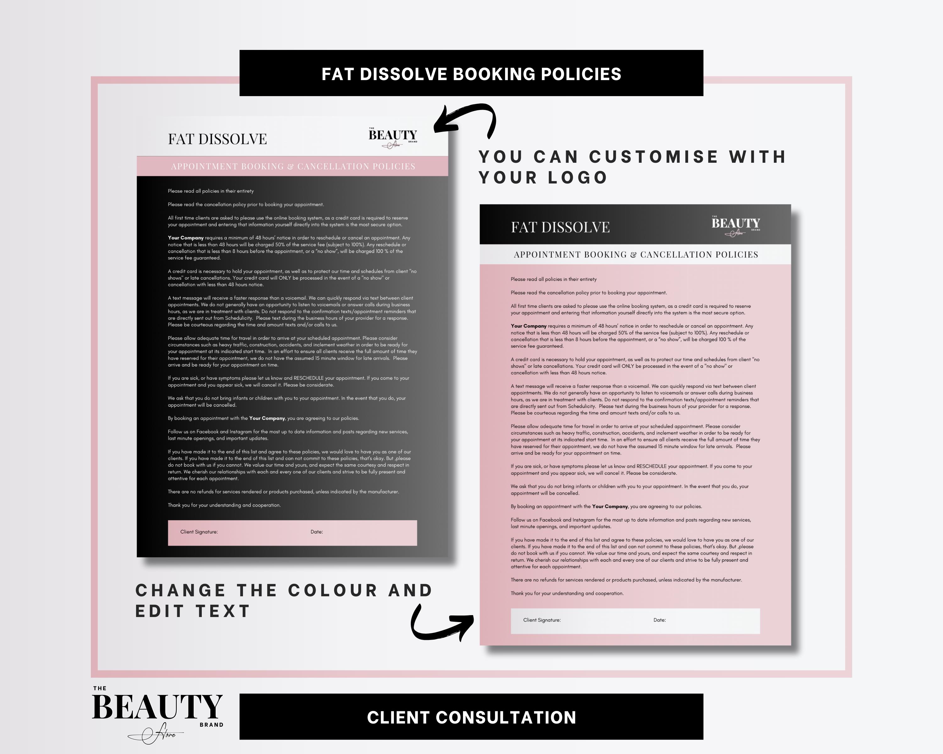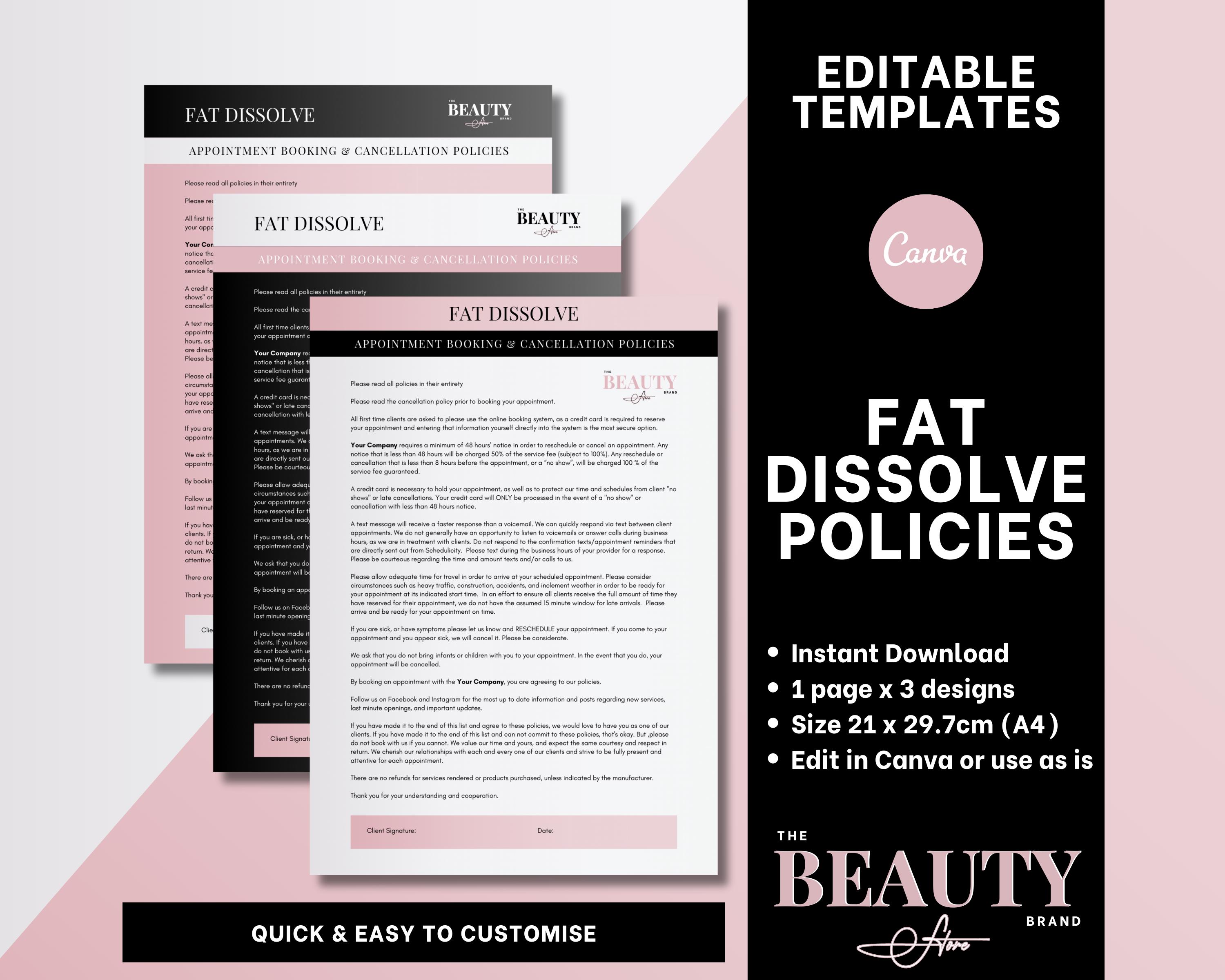 01 Page - (3 designs) Fat Dissolve Policies for Appointments and Cancellations