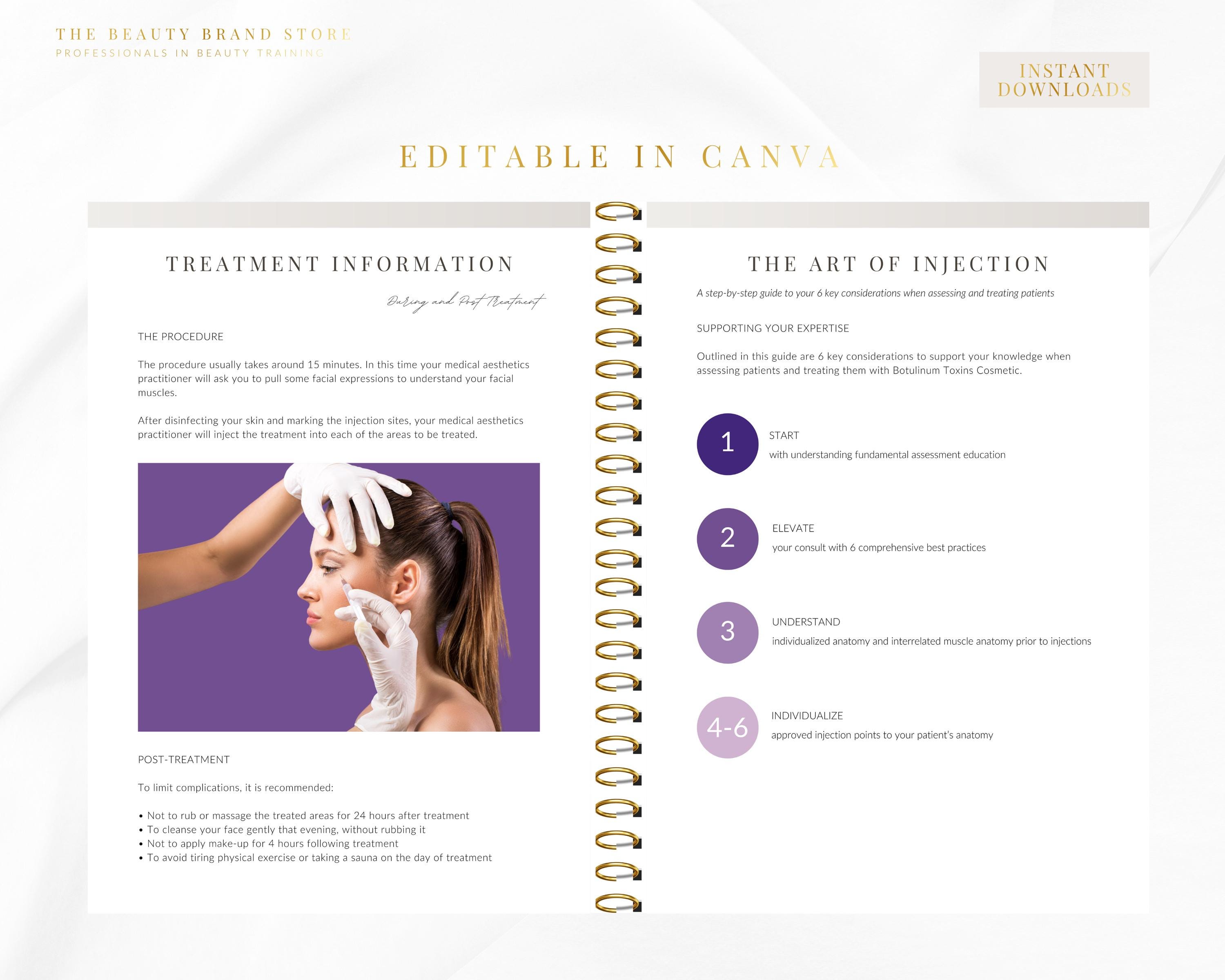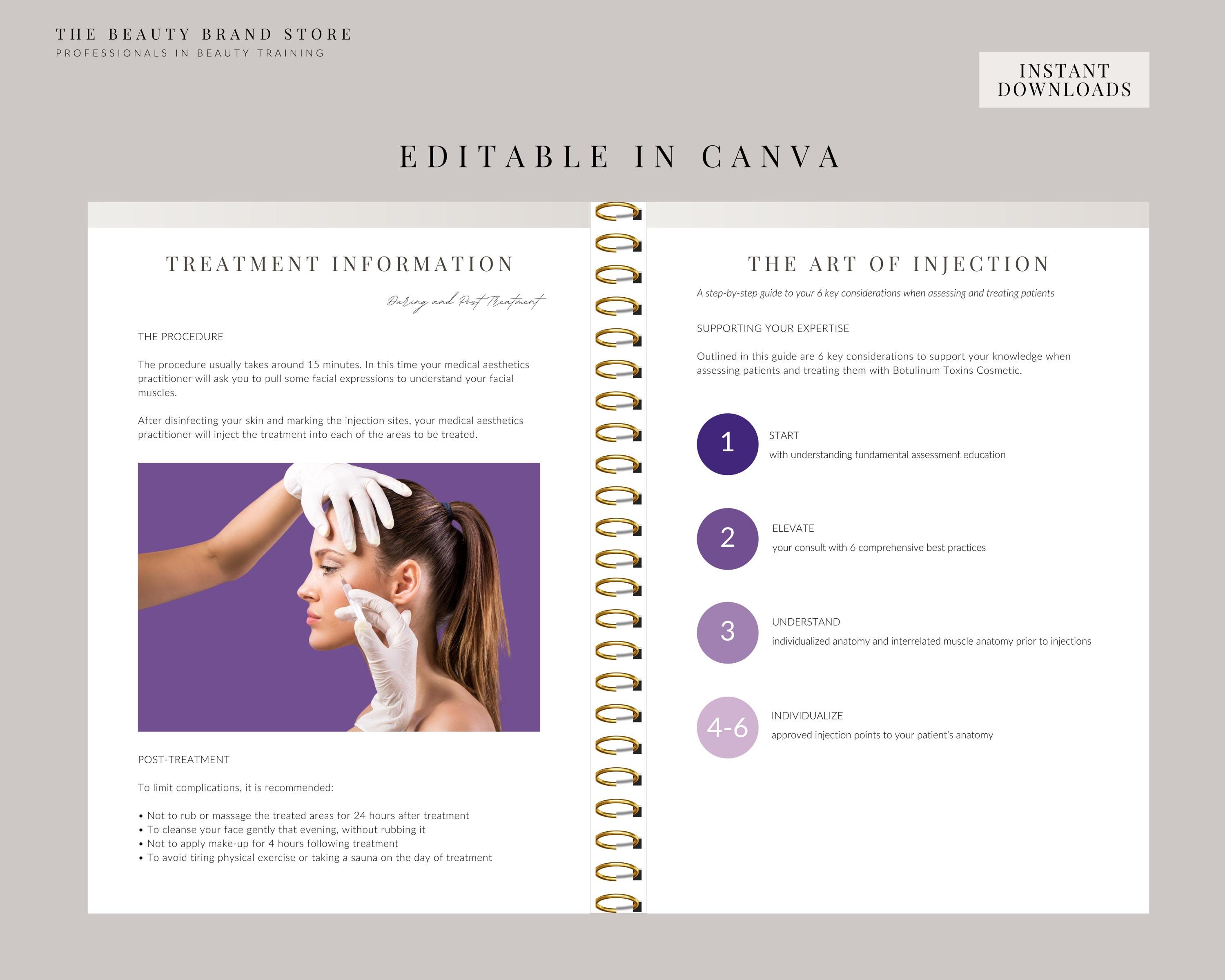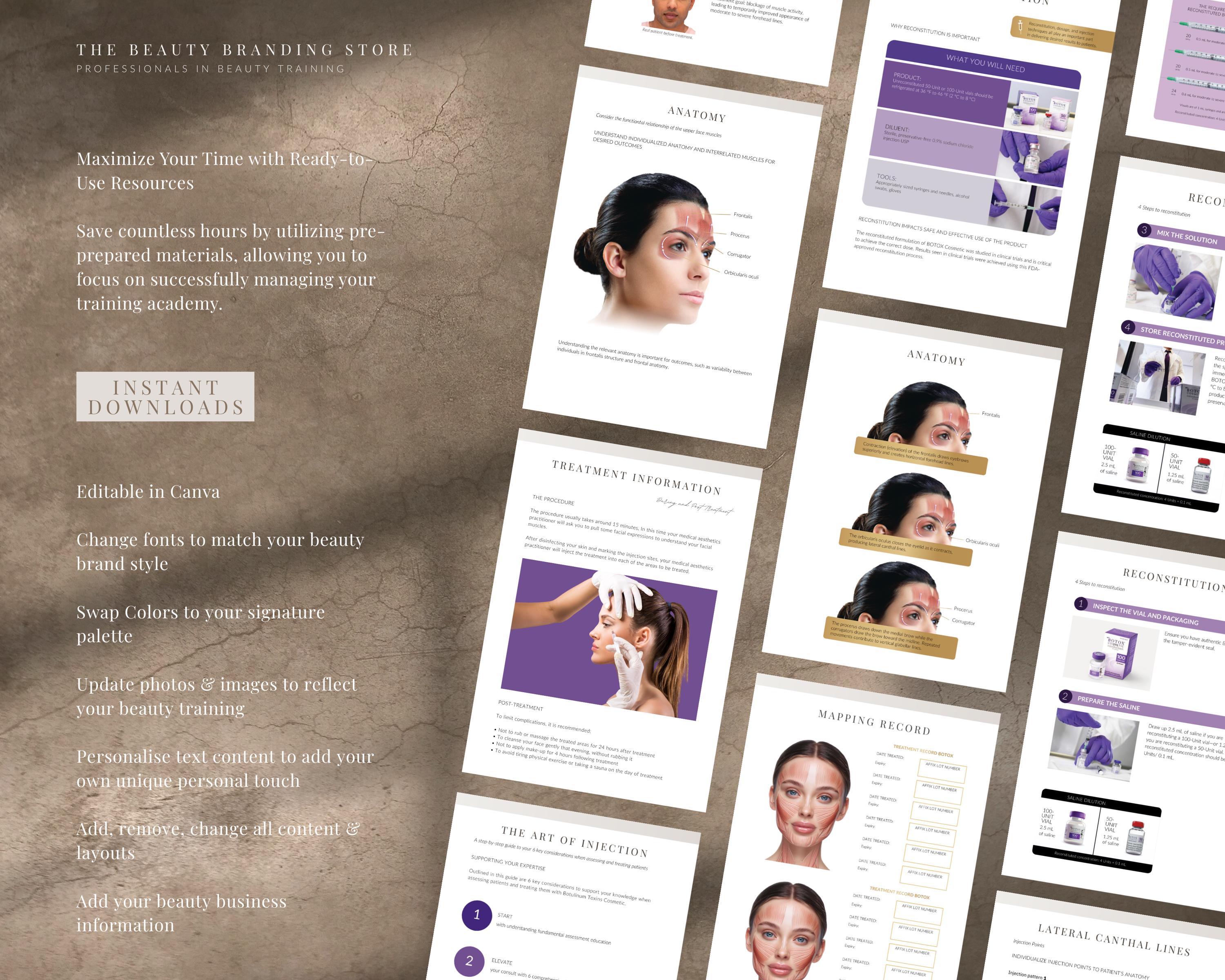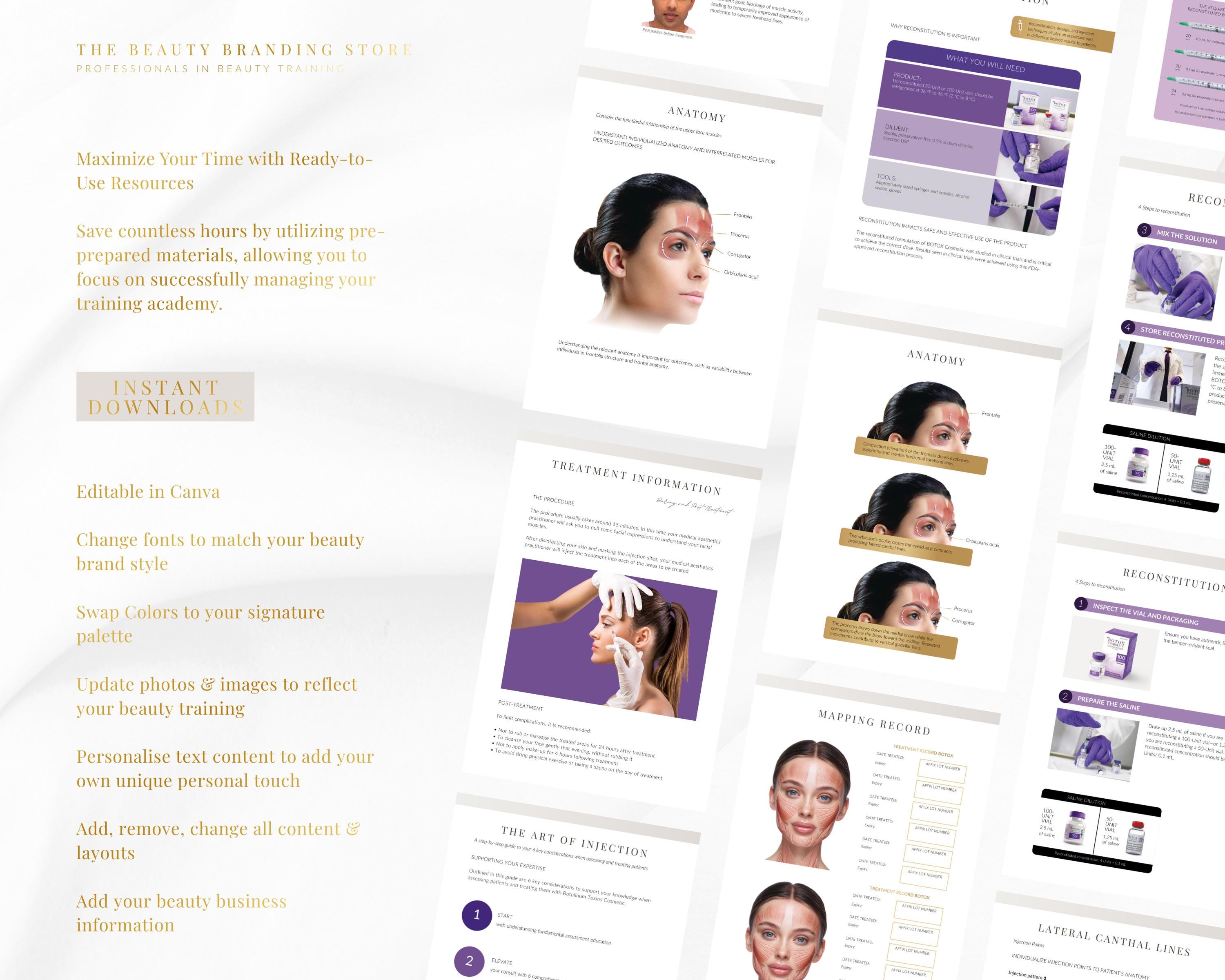 Botox Training Manual, DIY or Professional, Beginners, Cosmetic Aesthetics, Botox Injections Guide, Protocol Booklet, Editable PDF EBook