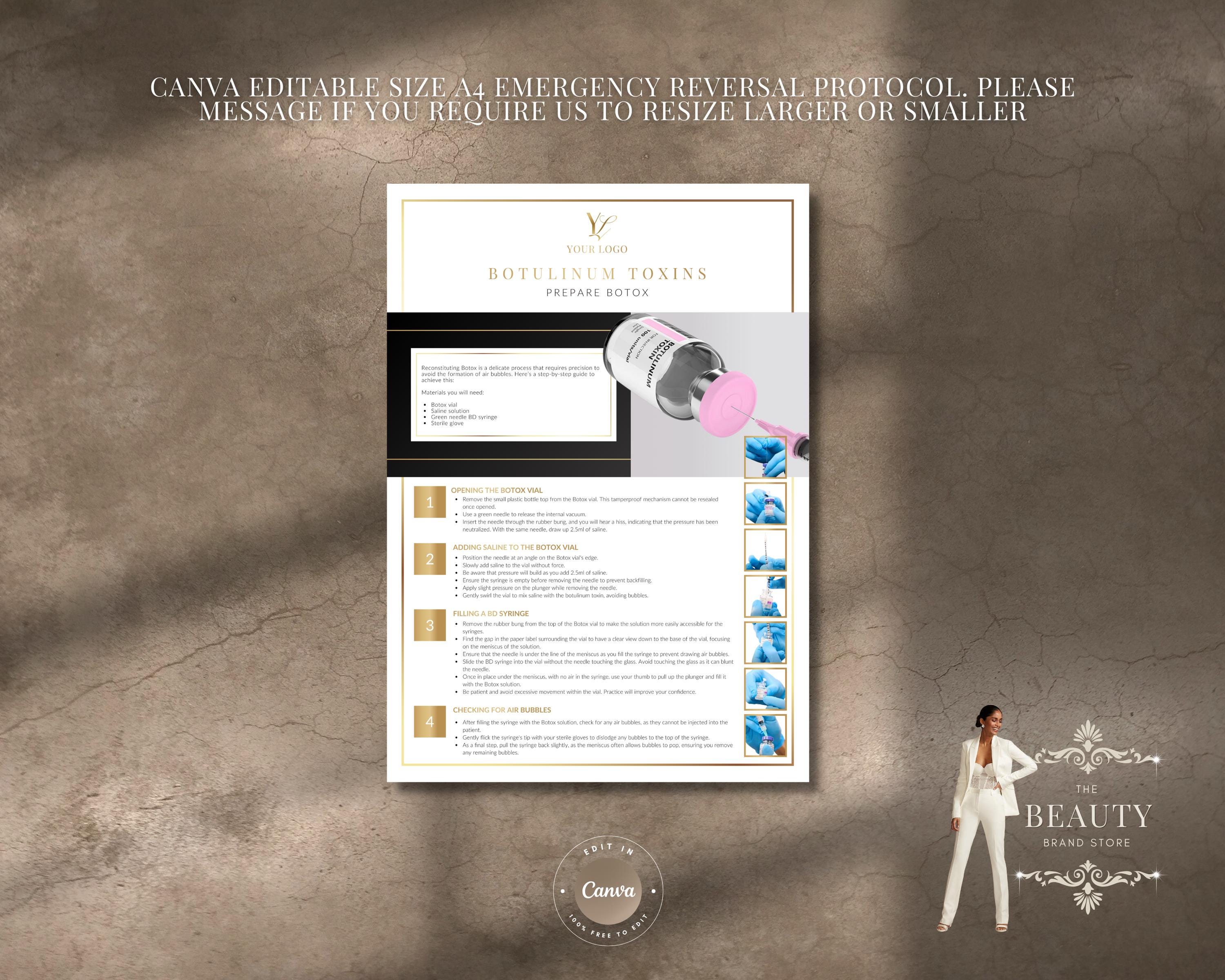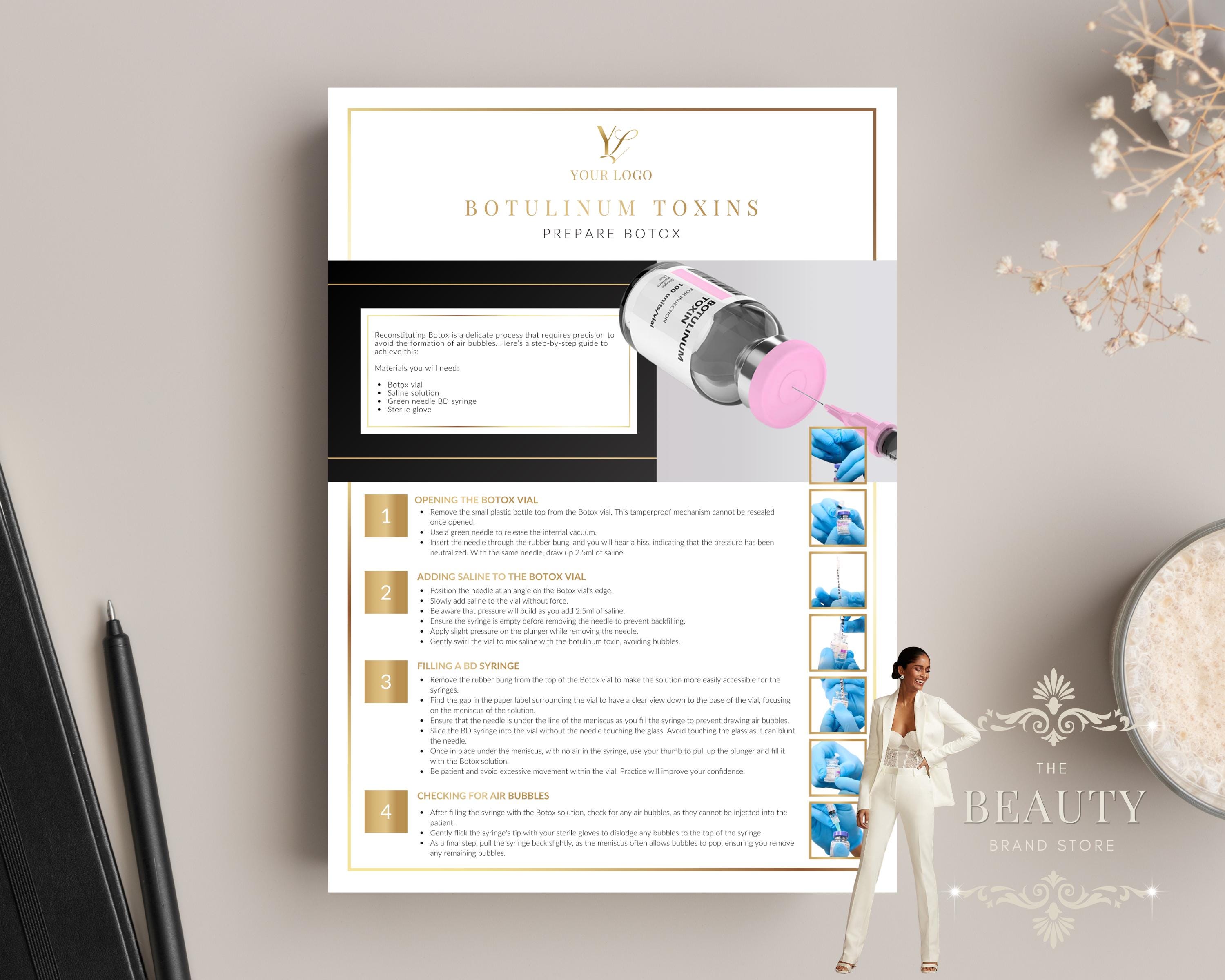 Botox Lesson Step by Step Preparation Editable Cheat Sheet, Ref Guide, Learning Resource or Printable Poster for Aesthetics Practitioners