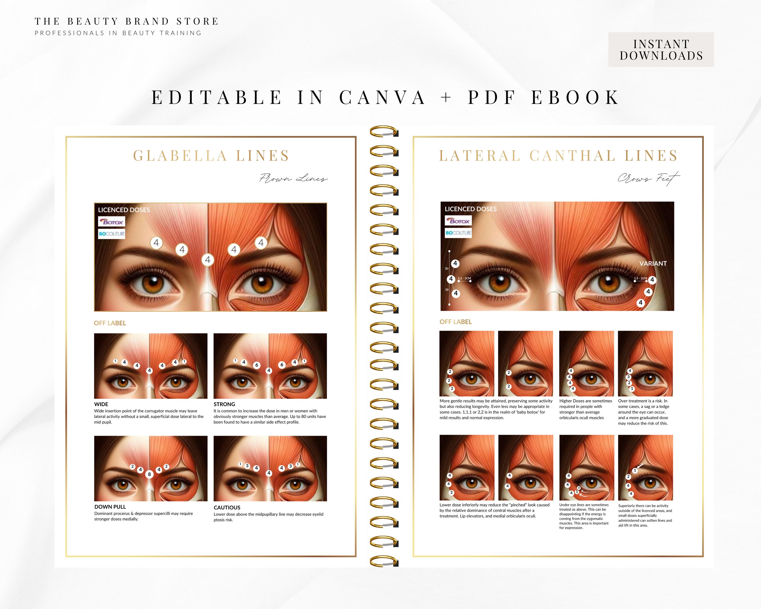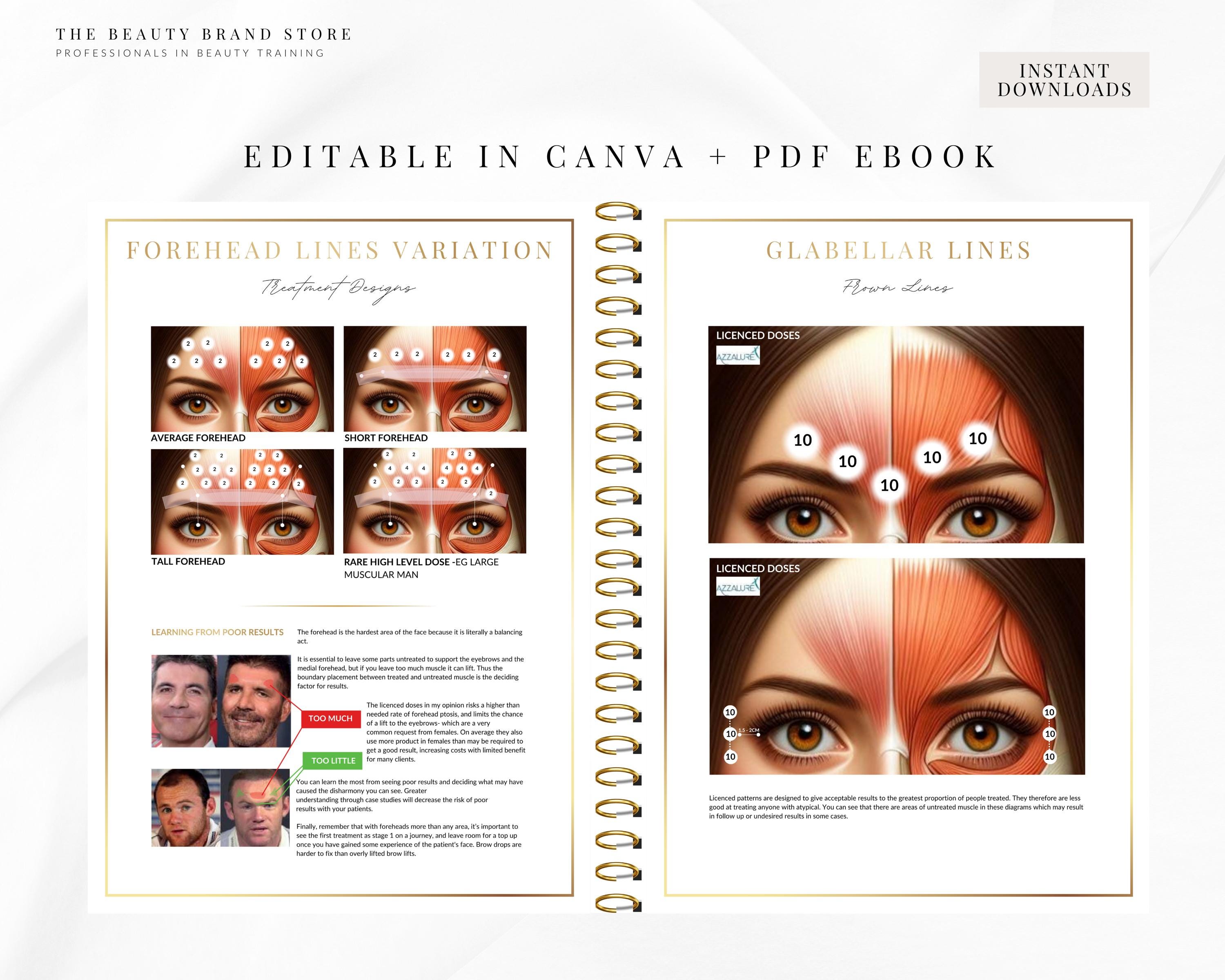 Botox Injection Patterns Booklet, Essential Botox Injections Guide, Aesthetics Injector Training, Reference Guide, Printable PDF eBook
