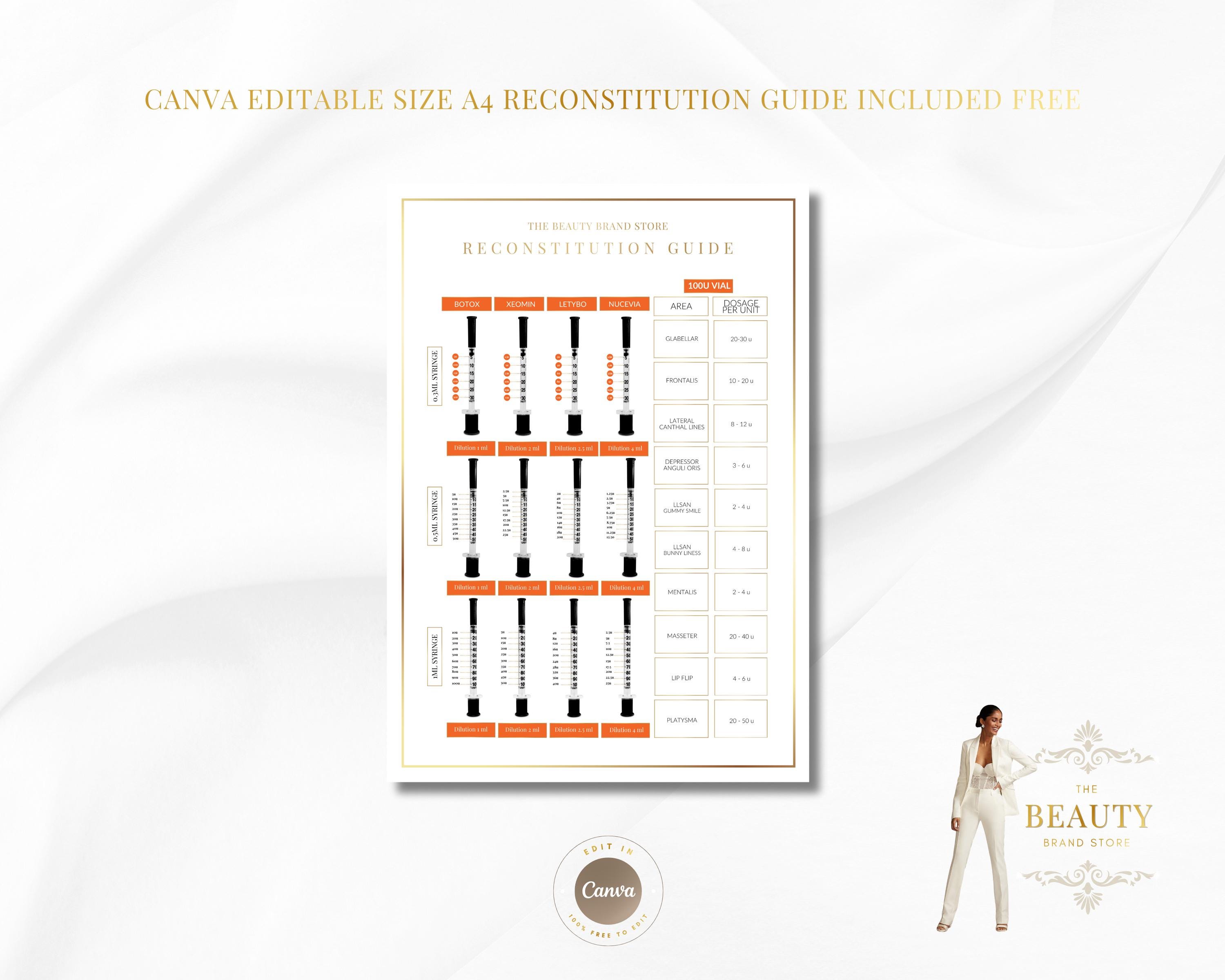 If you have you been searching for professional business guides for Botox injection patterns then this handy training booklet is ideal for you! For professional or DIY personal use. The guide covers the essential botulinum toxins patterns with detailed explanations. Also included is a botox Reconstitution and Dosage Cheat Sheet.