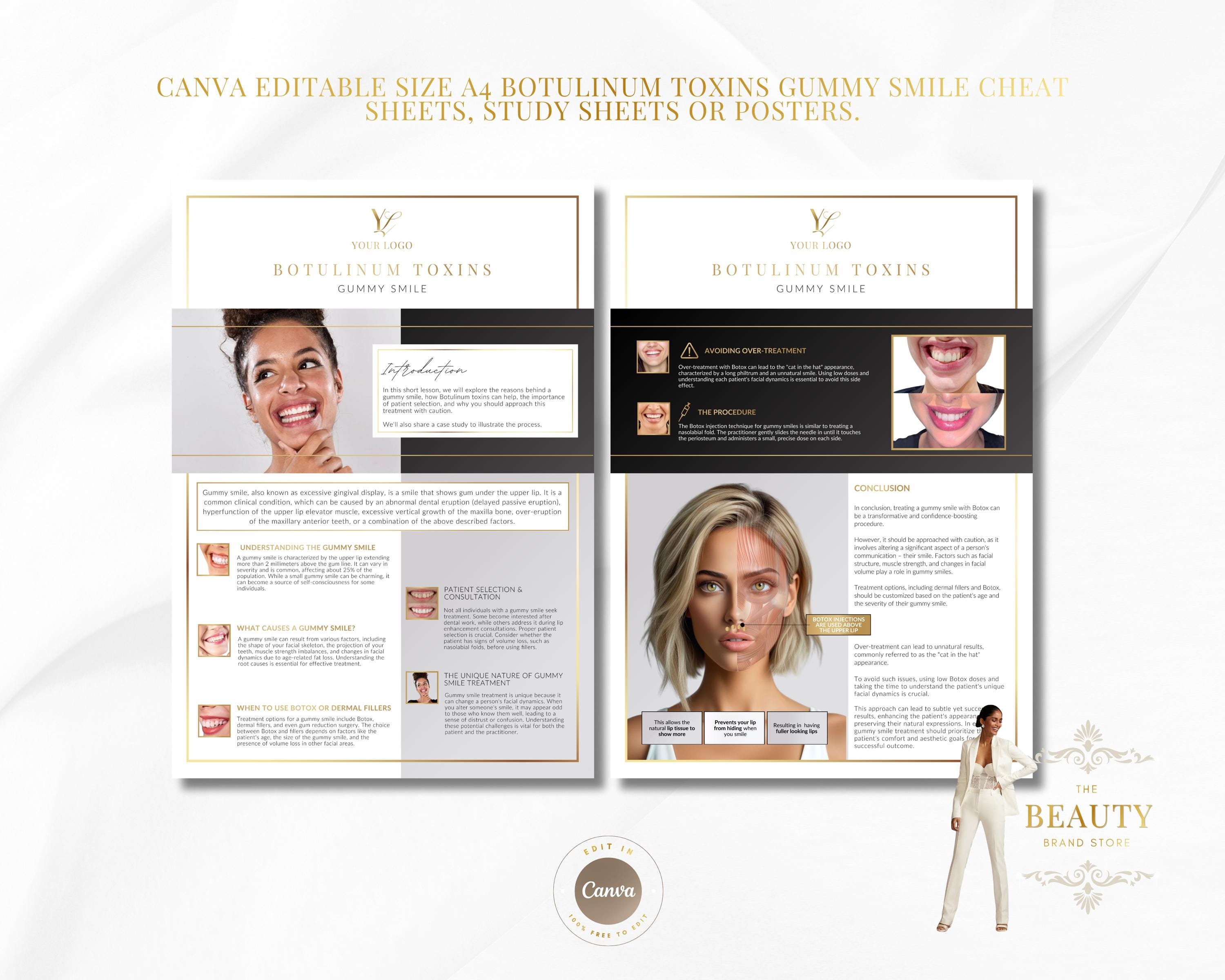 - Editable Canva Templates: A4 Botox Cheat Sheets for Gummy Smile / Lip Flip x2