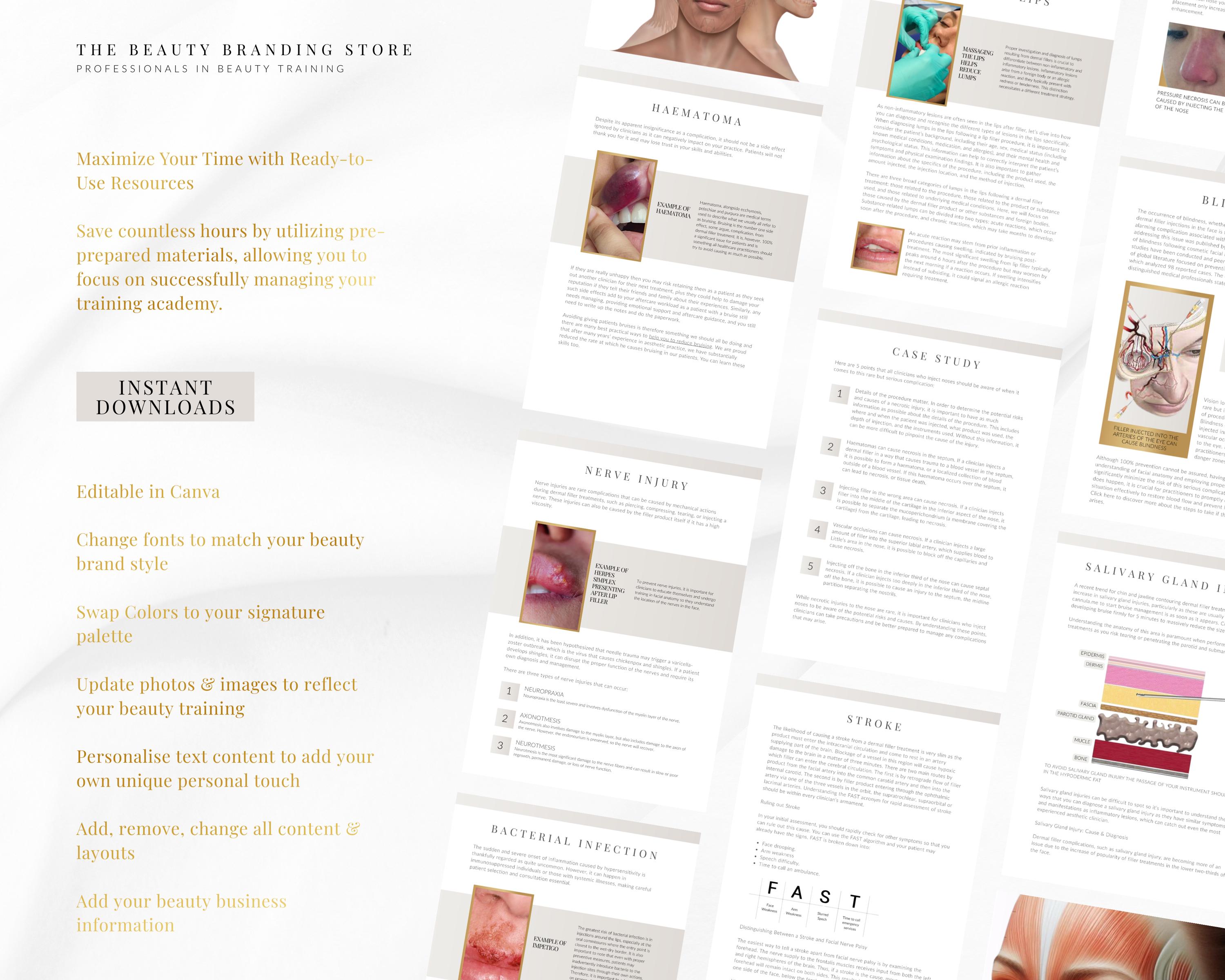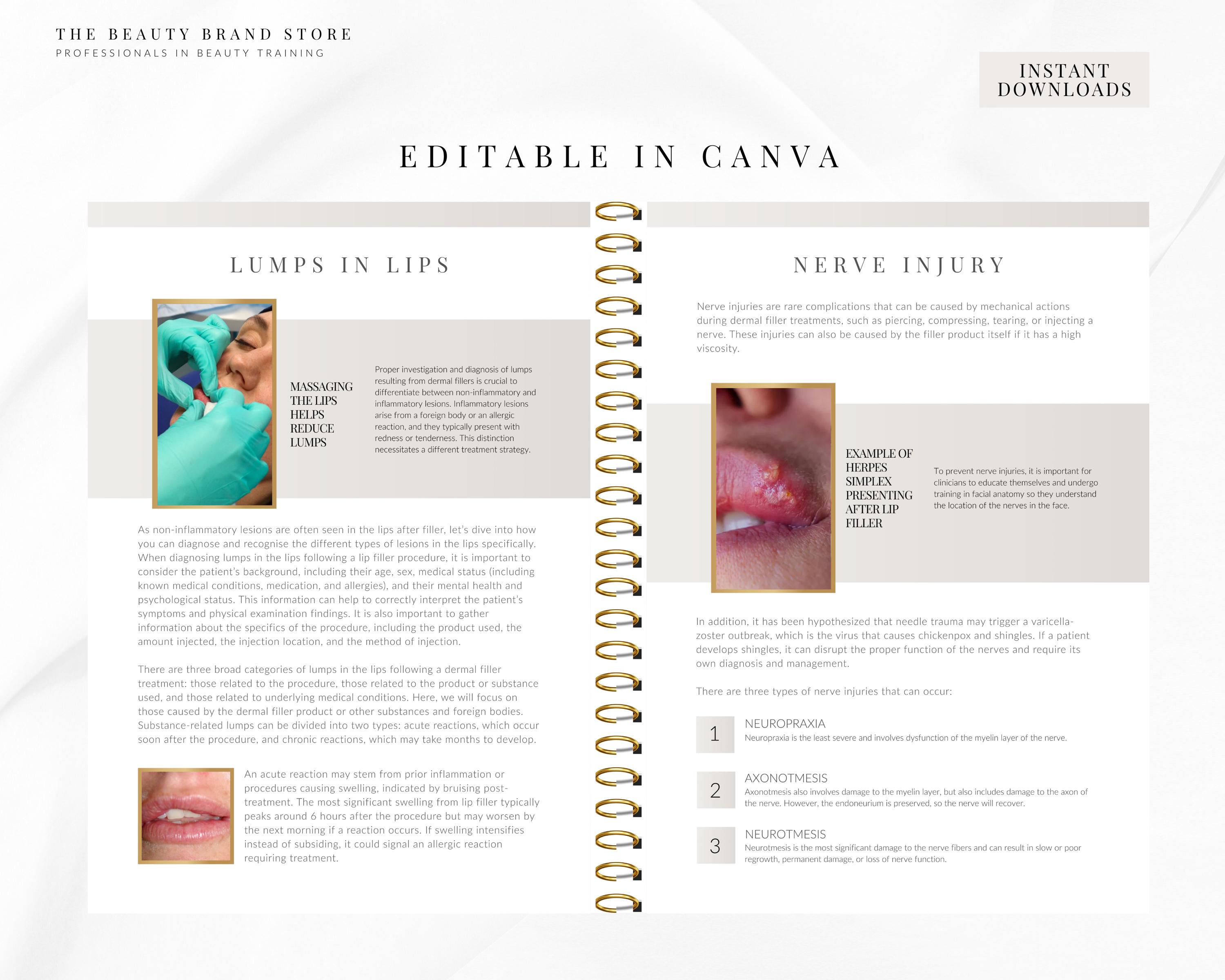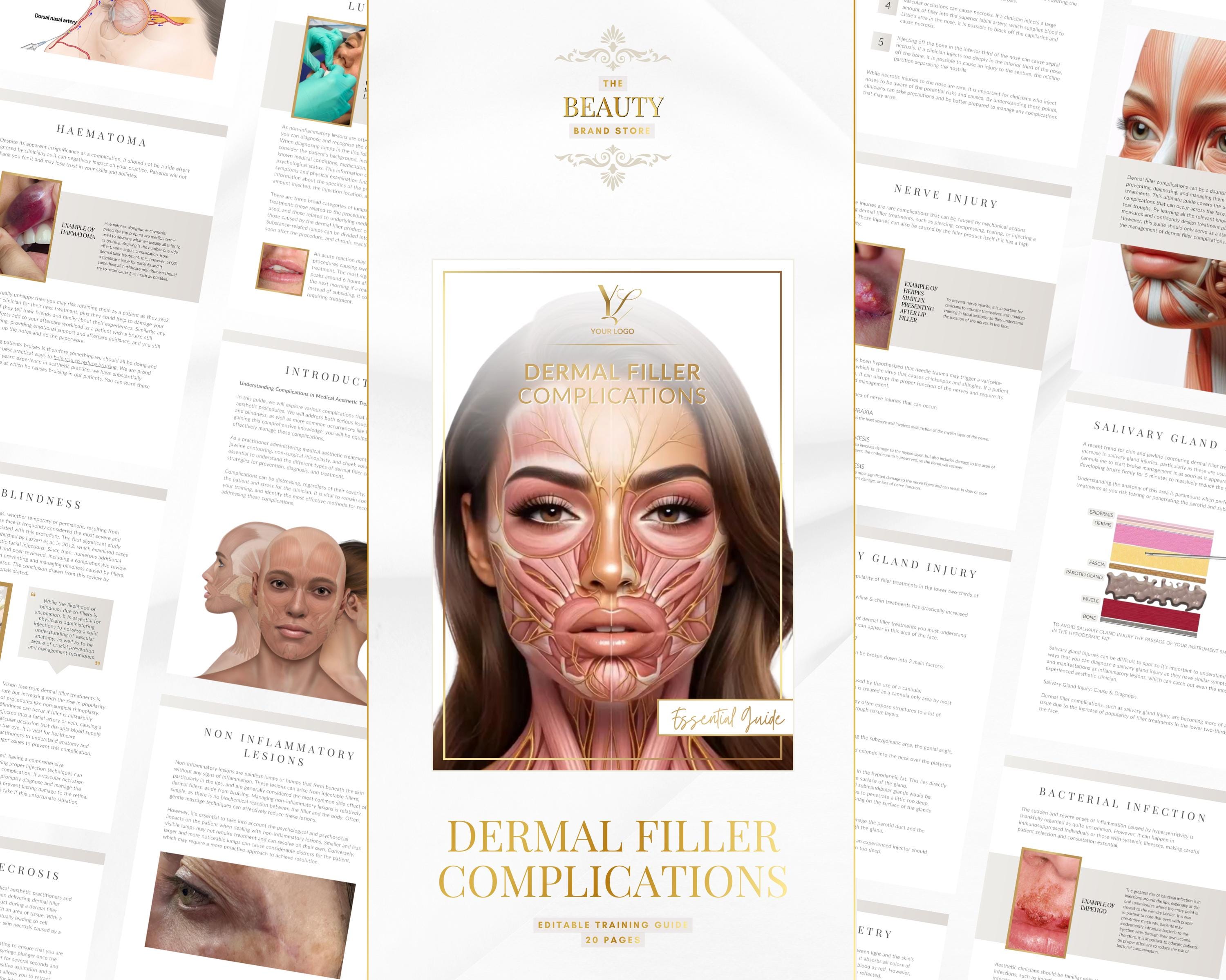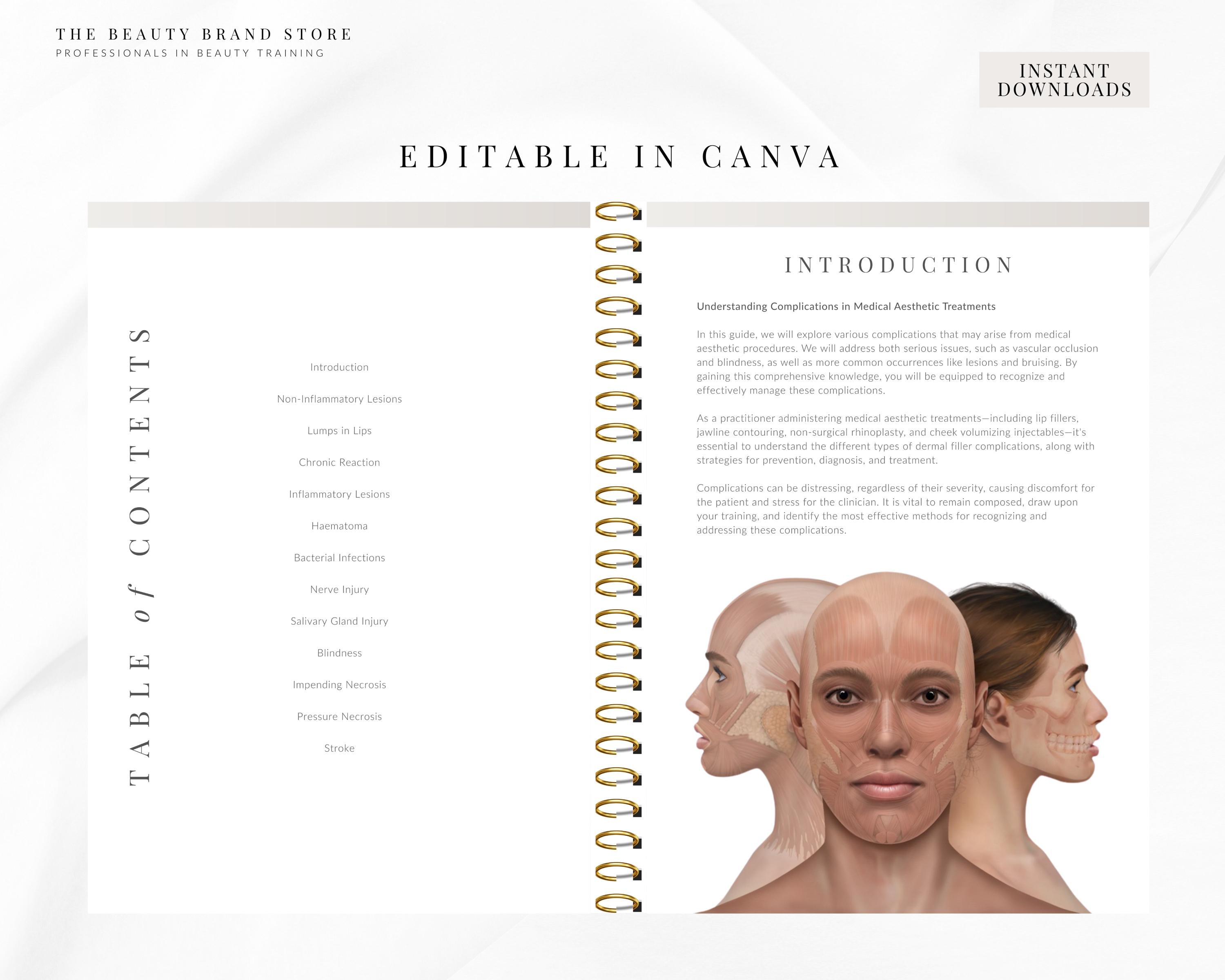 Dermal Fillers Complications Guide for Aesthetics Injectors, Cosmetic Aesthetics, Medspa, Editable PDF e-Book Canva Template