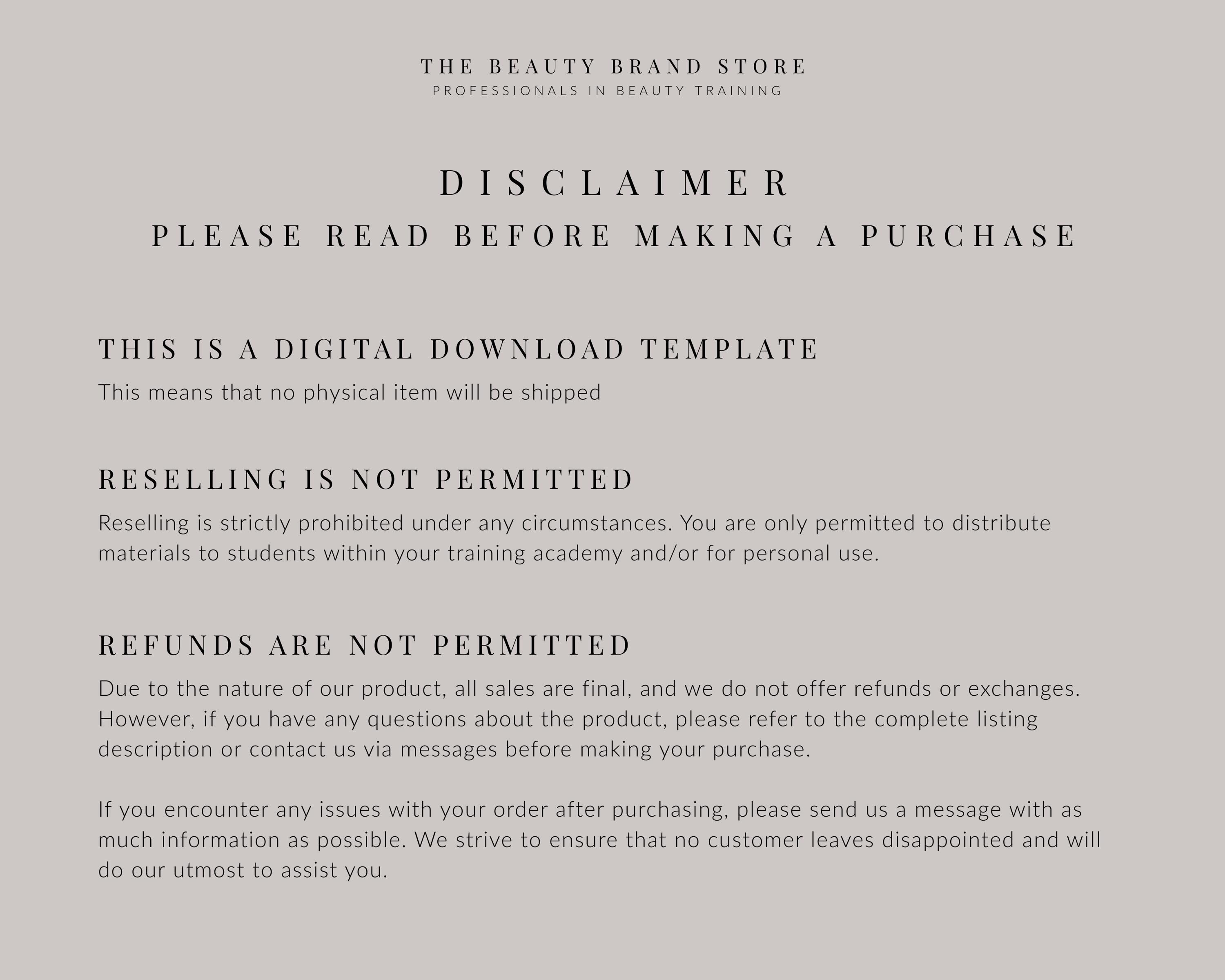 Copyright © 2026-2027 The Beauty Branding Store. All rights reserved. The materials and graphic design elements are protected under copyright laws and are registered with unique reference numbers. Reproduction or resale of these materials in any form is strictly prohibited. The materials are intended for personal use and as training resources only. Any detected infringements will be prosecuted under copyright law.
