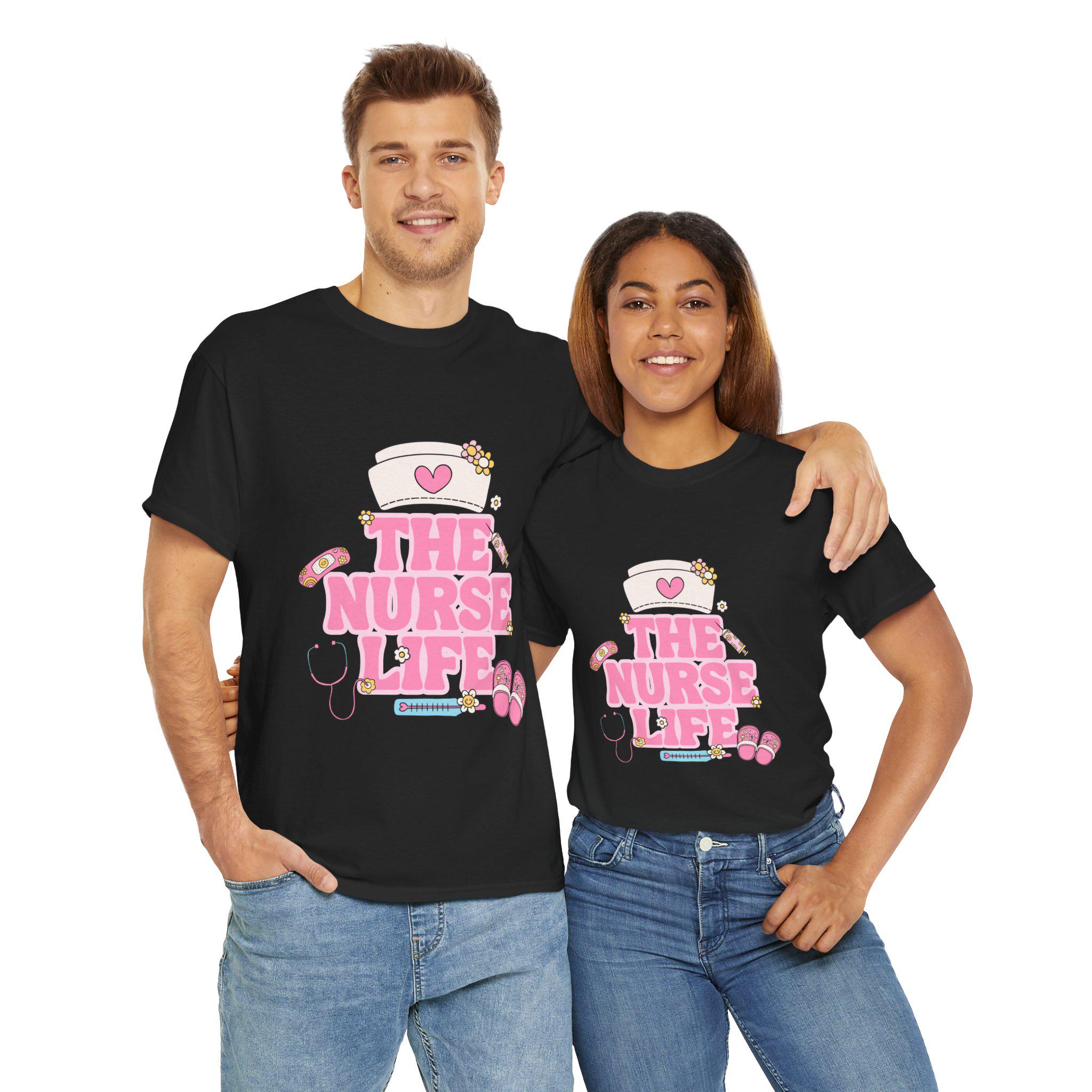 The nurse life heavy cotton tee is the basic staple of any wardrobe. It is the foundation upon which casual fashion grows. The specially spun fibers provide a smooth surface for premium printing vividity and sharpness. No side seams mean there are no itchy interruptions under the arms. The shoulders have tape for improved durability.