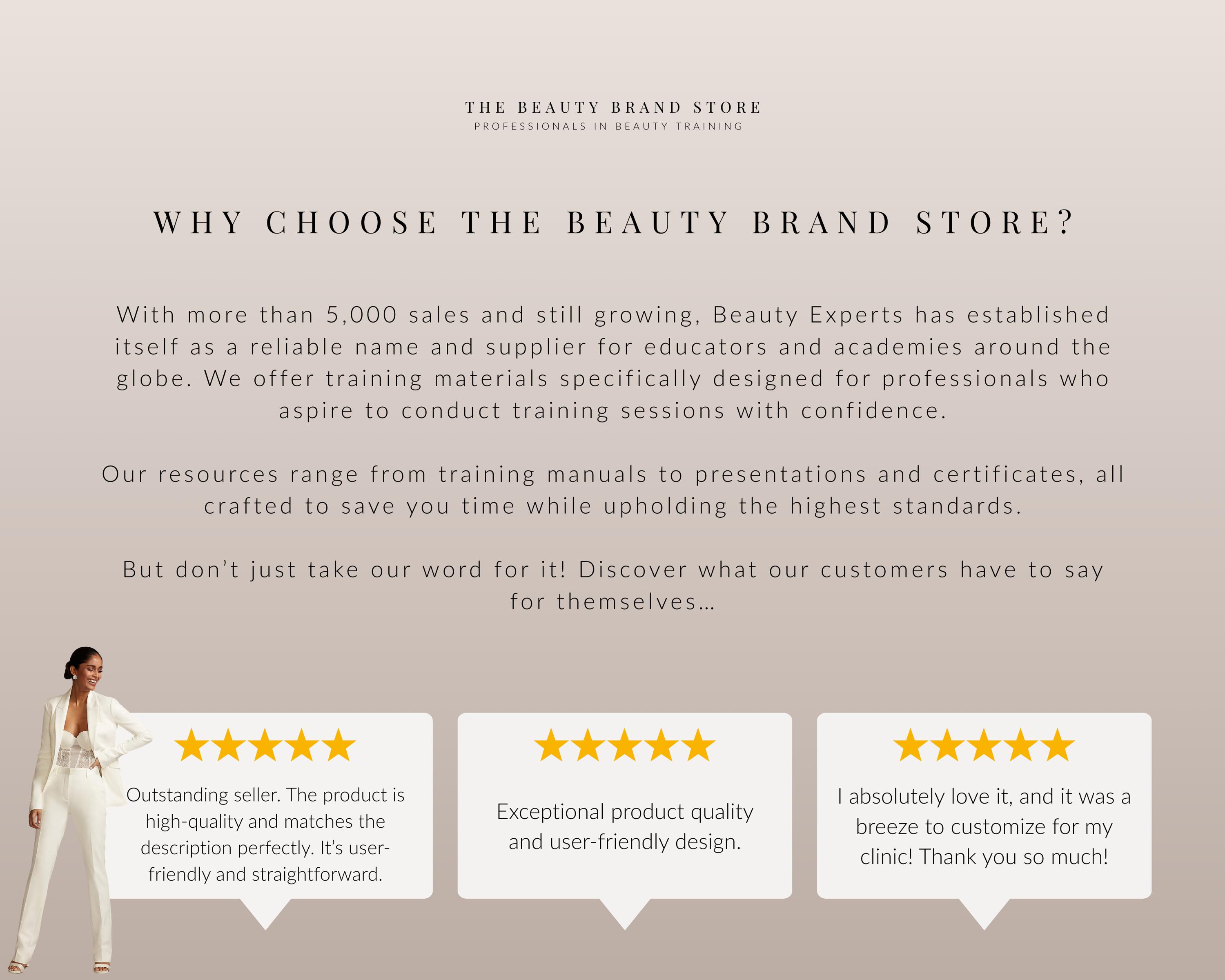 Brand for your own aesthetics company, use as a reference guide or as a teaching resource.