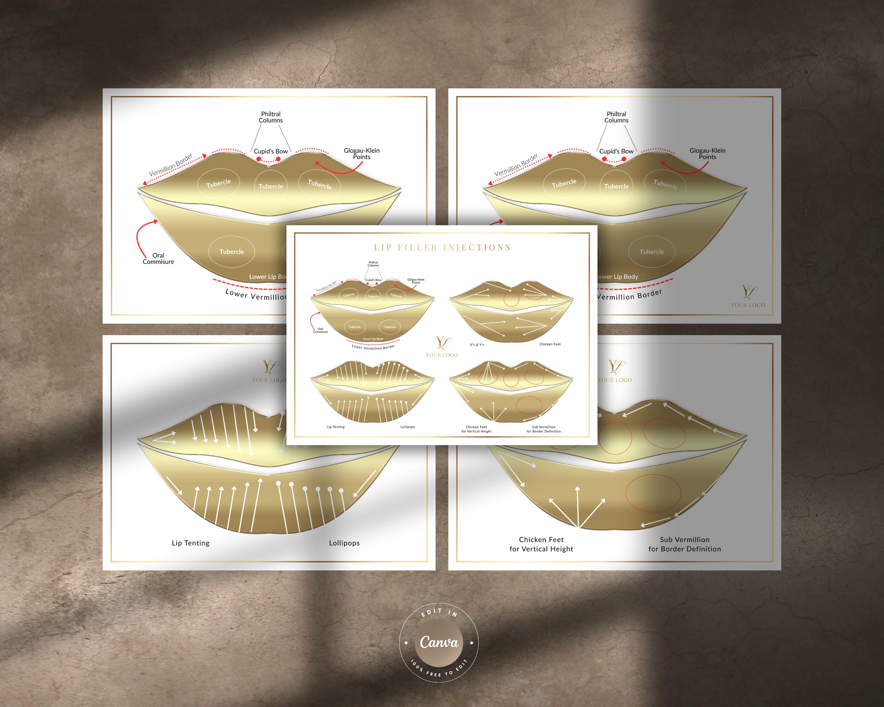 EDITable Lip Filler Practice Injection Techniques Templates, Hands on Learning, Aesthetic Injections Tutor Student Resource