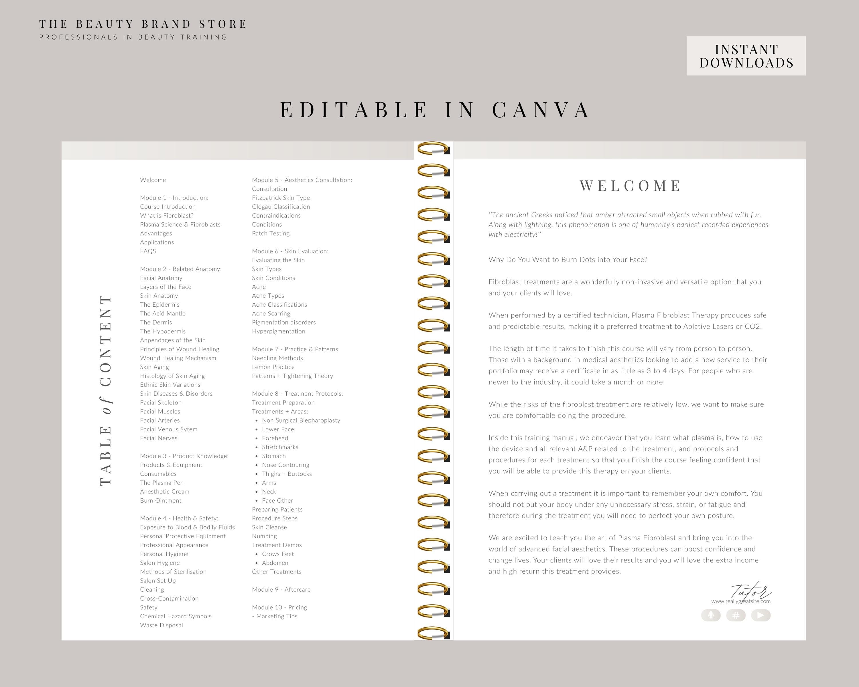 Plasma Pen Manual, Fibroblast Training Manual, Plasma Pen Course, Fibroblast Guide, Edit in Canva, Professional Manual Student or Educator