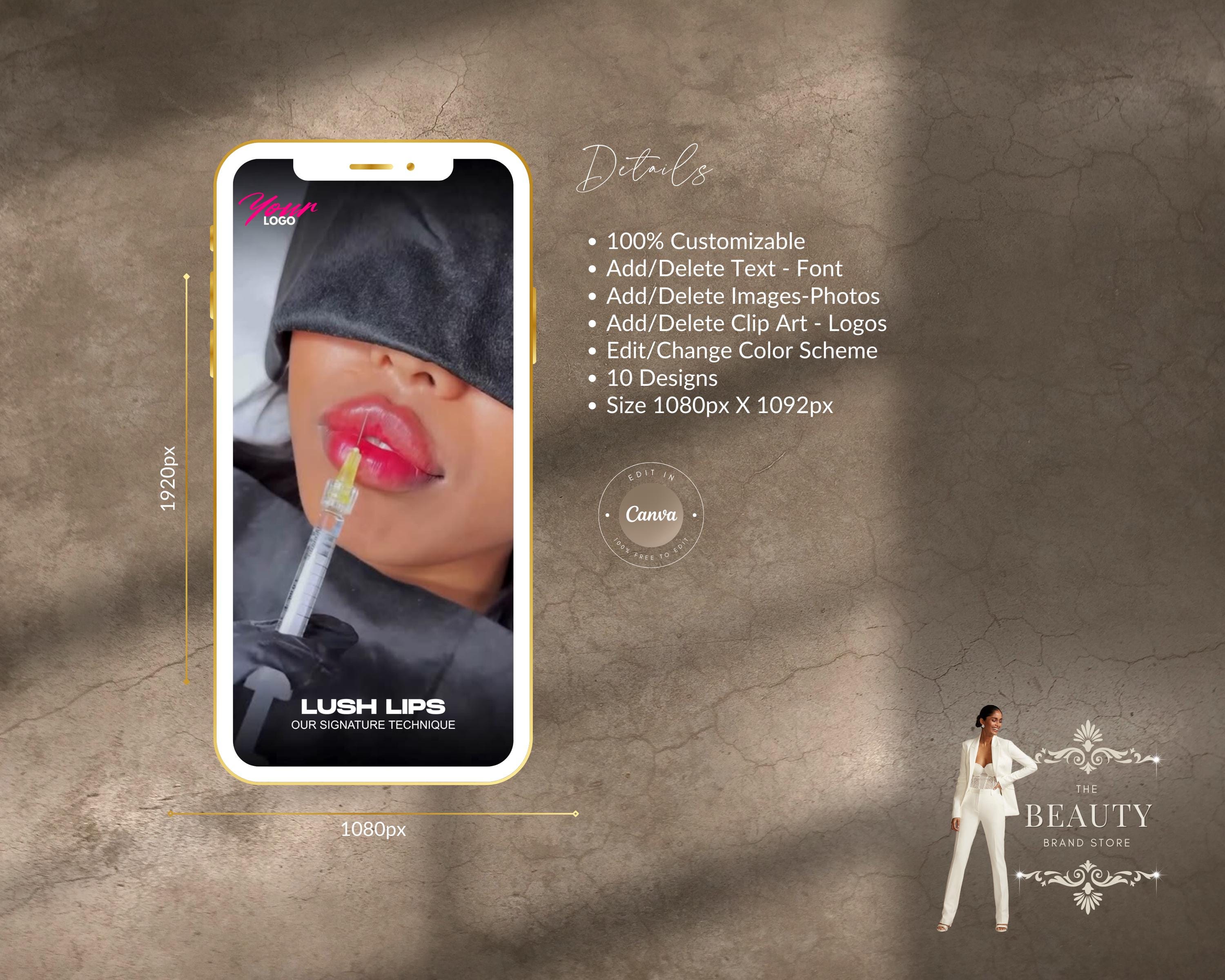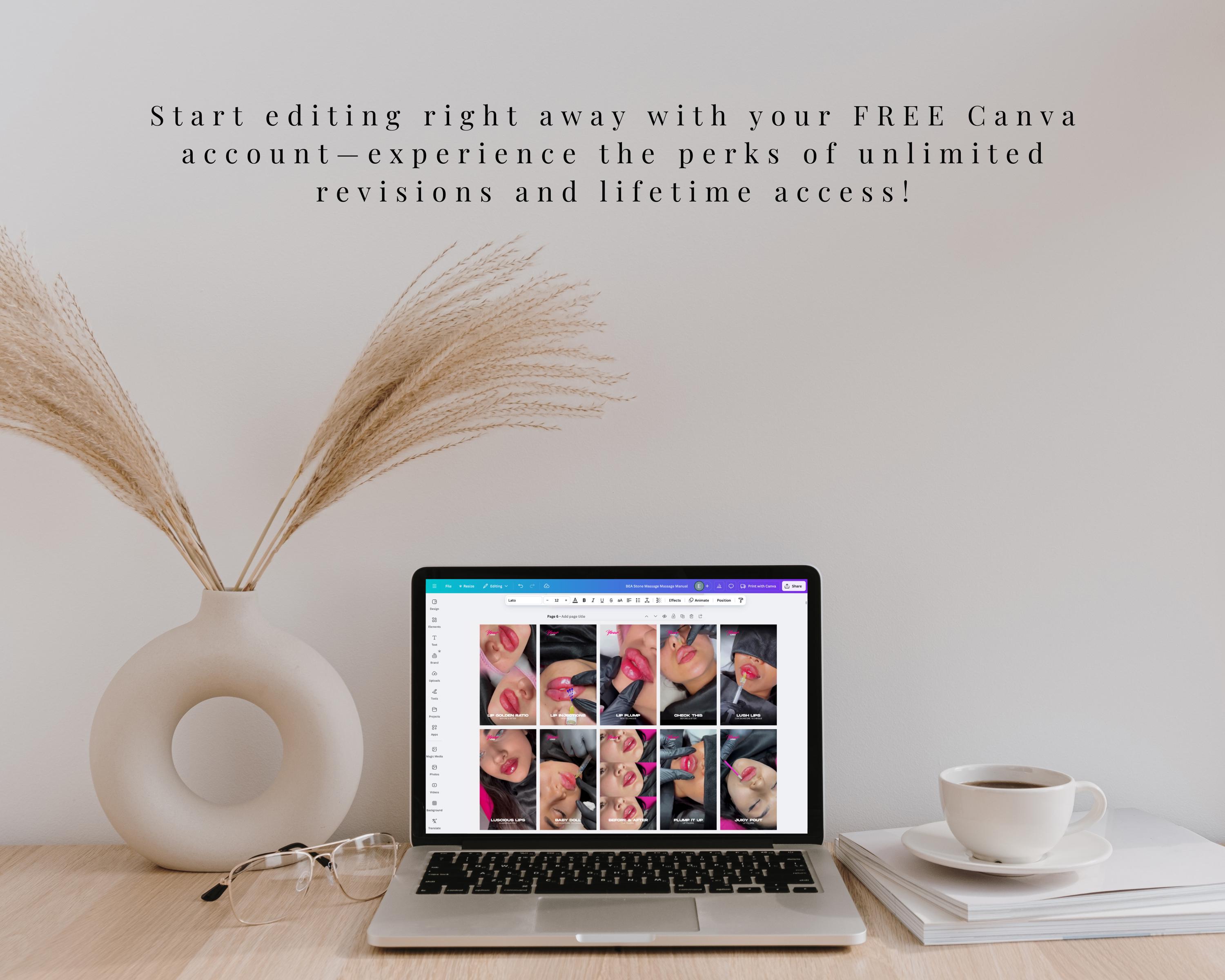 Welcome to our curated selection of expertly designed Canva templates, ideal for displaying before, during and after results of lip filler injections. Whether you are a cosmetic professional, influencer, or beauty enthusiast, these templates are specifically designed to showcase remarkable transformations.