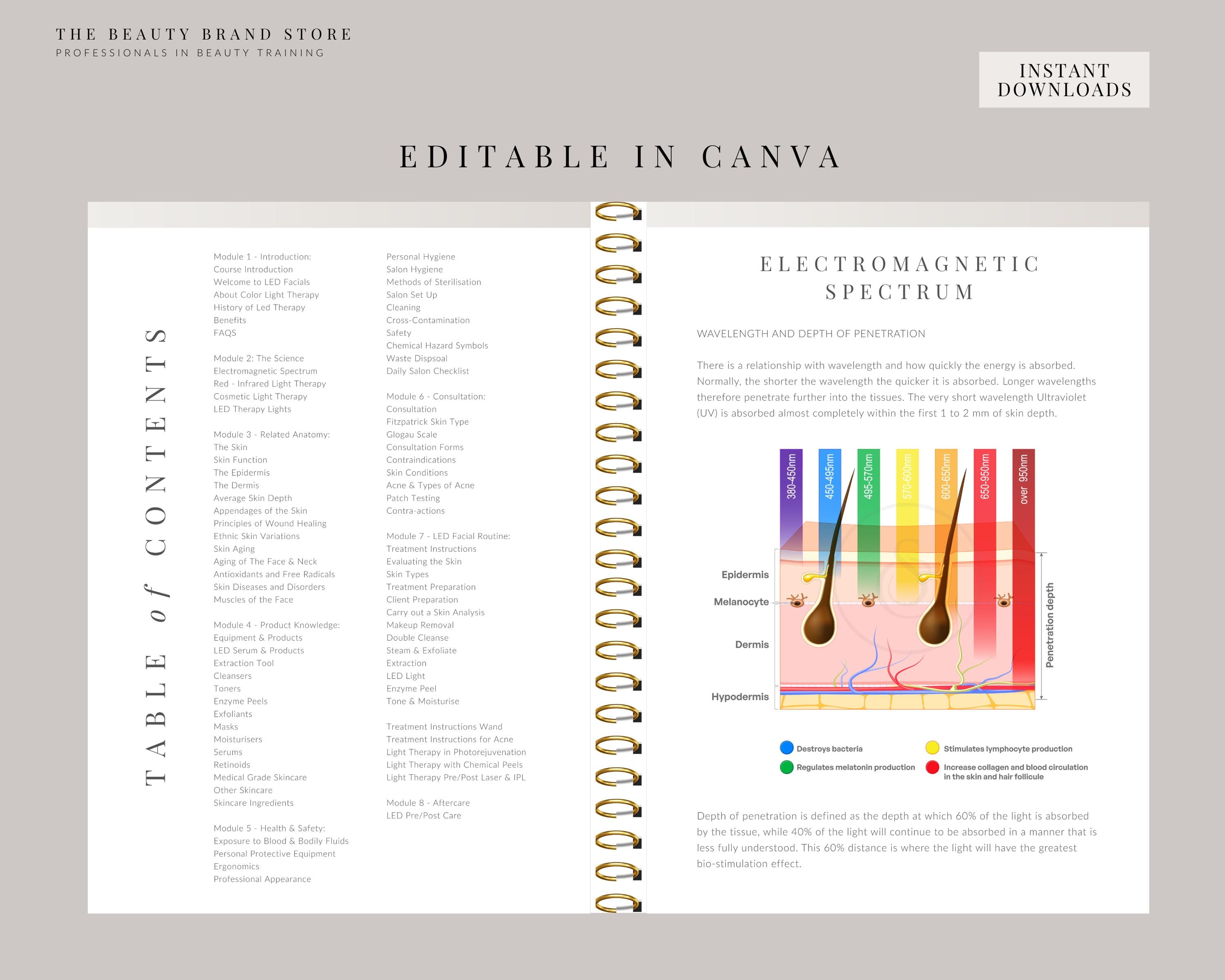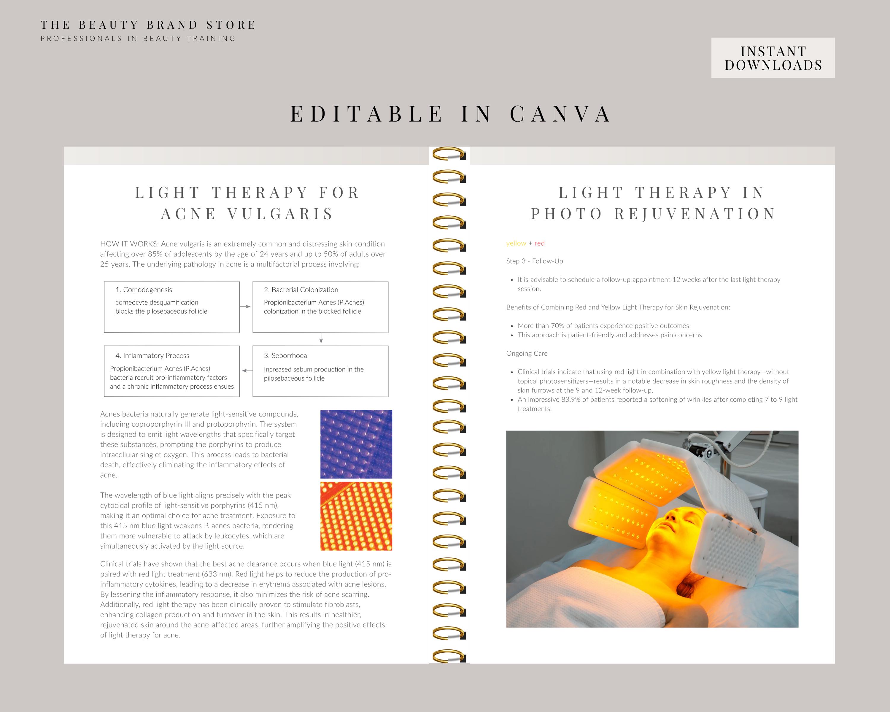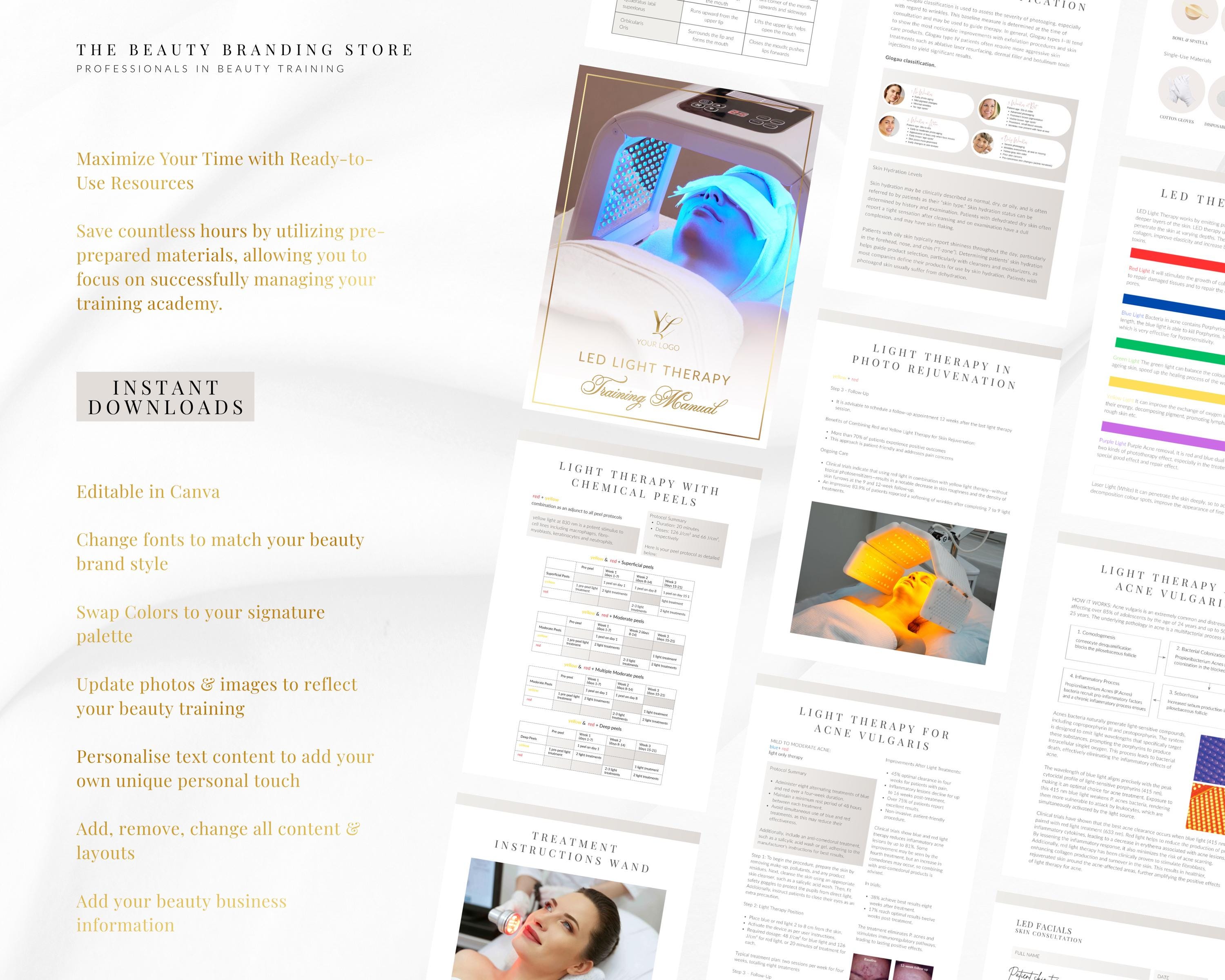 LED Facials Training Manual, LED Light Therapy Course, Phototherapy Guide, Edit in Canva, Professional Beauty Manuals, Student, Educator