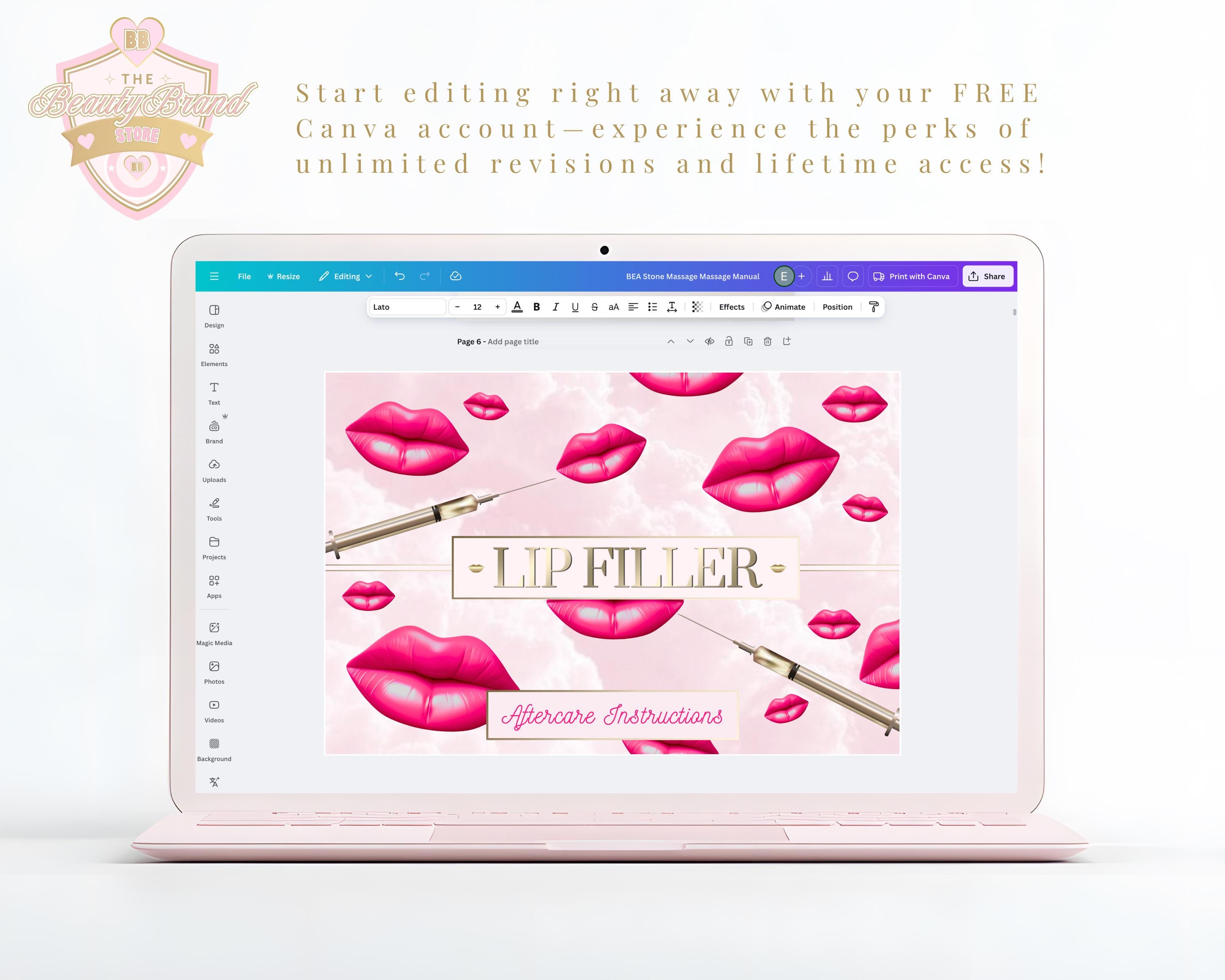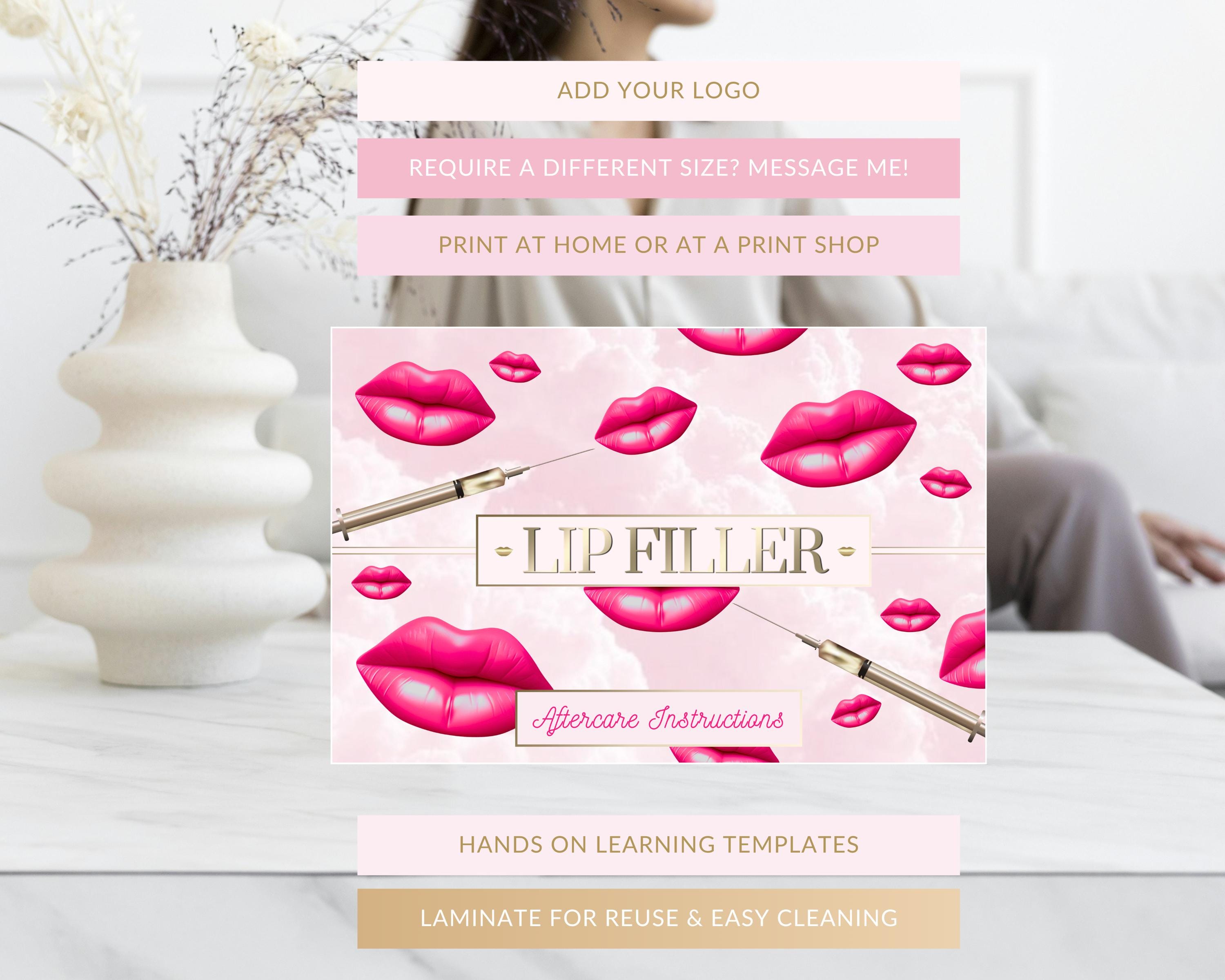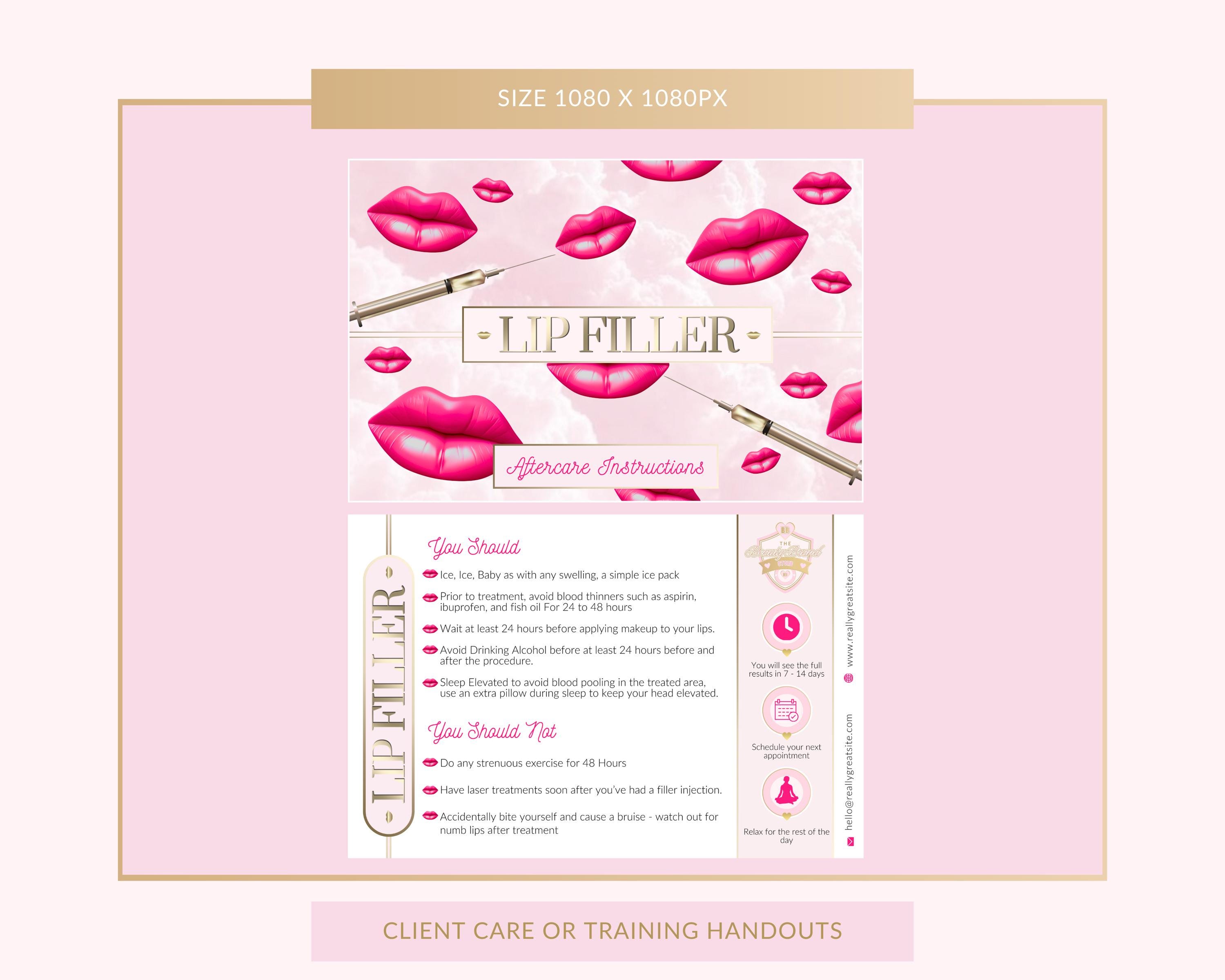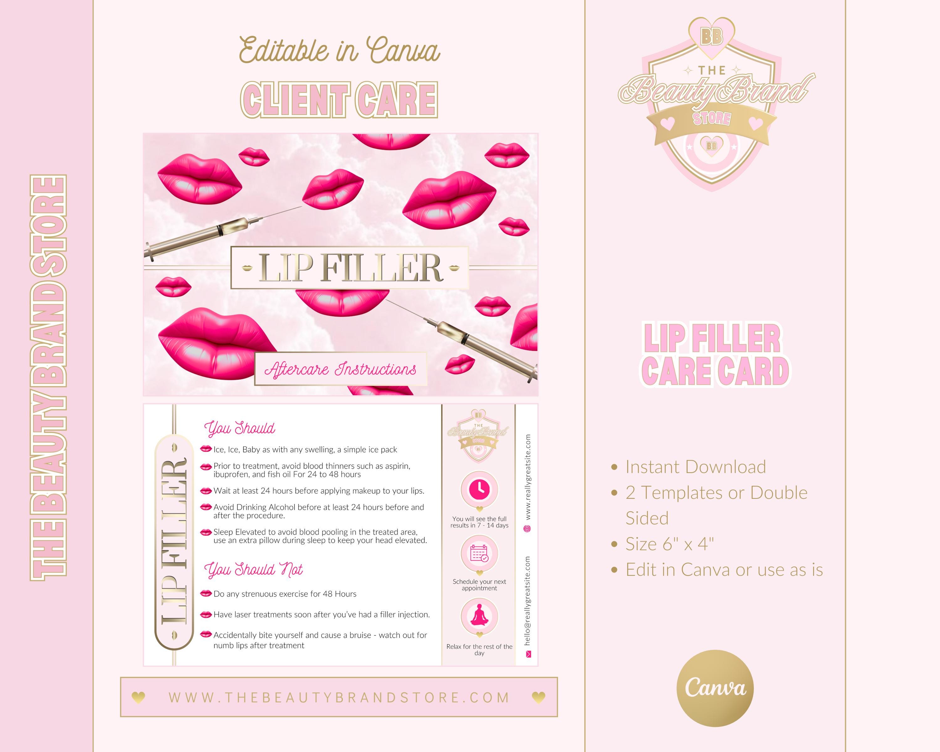 Lip Filler Aftercare Cards, Lip Fillers Client Handouts or Student Learning Material: Editable Canva Templates (Instant Download)