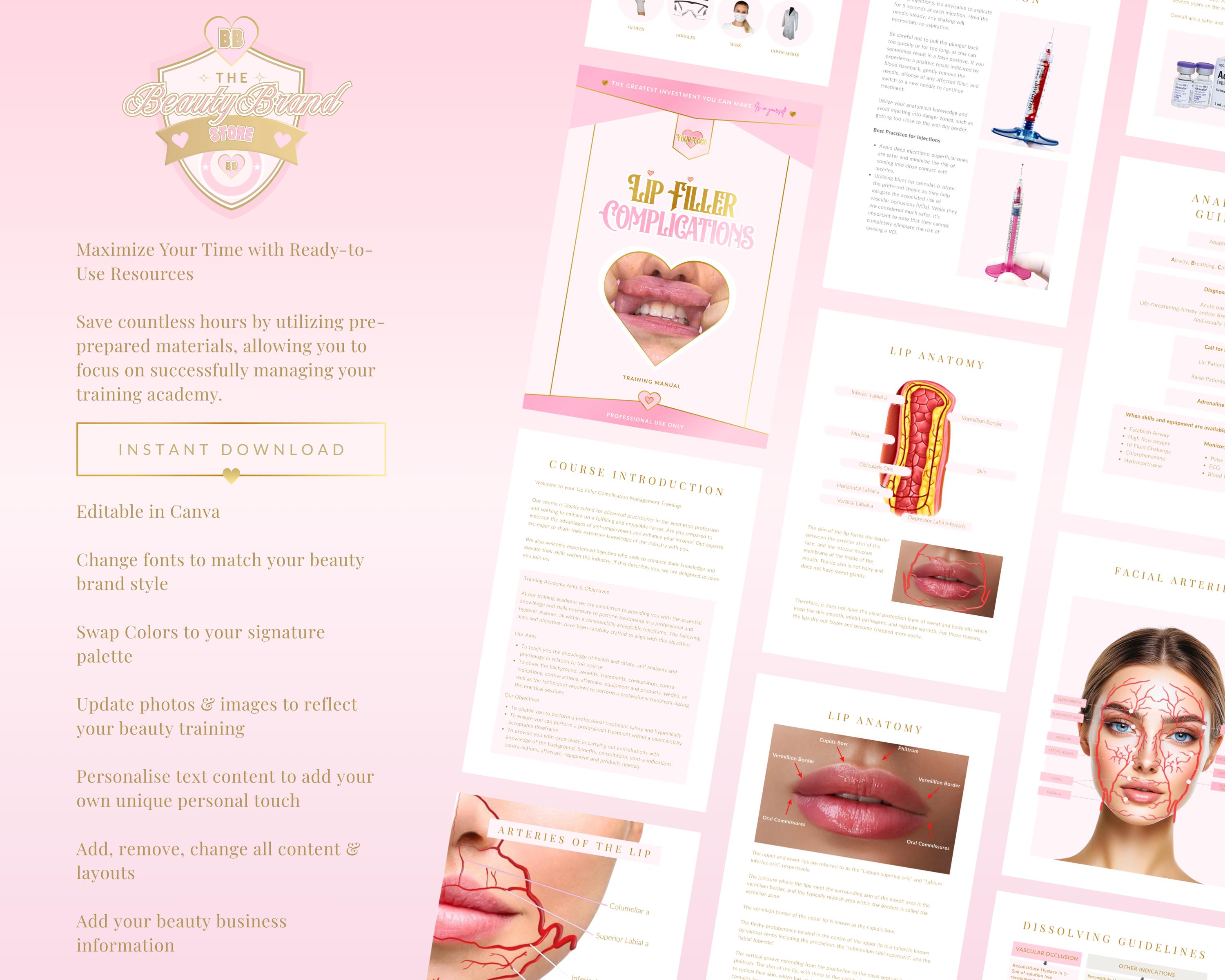Lip Fillers Complications Guide: Lip Augmentation Training Manual (Editable Canva PDF eBook)