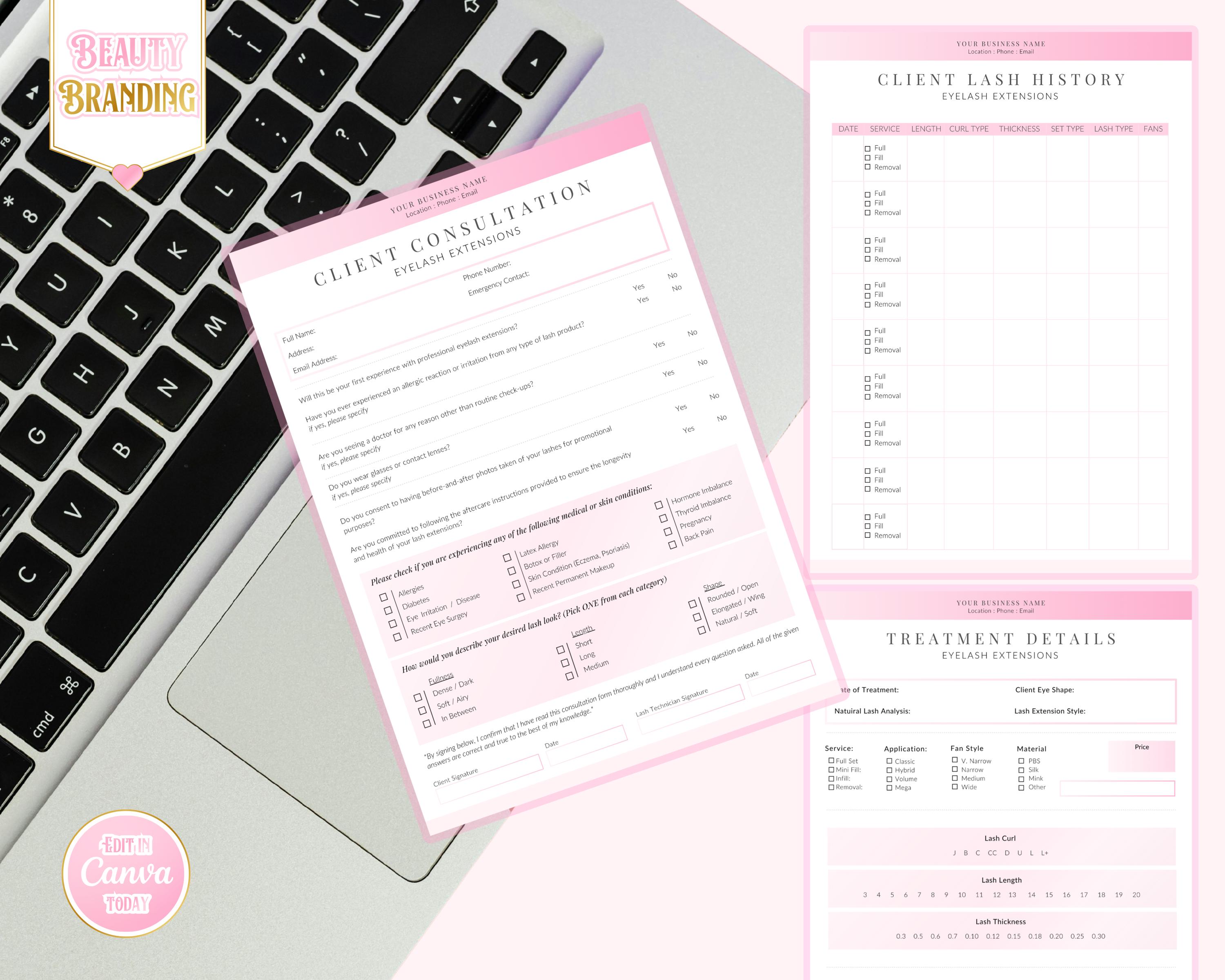 Are you a beauty entrepreneur aiming to enhance your eyelash extension business while maintaining professionalism and compliance? Look no further! Our Eyelash Extension Forms are designed to revolutionize your client management process. This digital product is fully customizable using Canva, making it a perfect match for your unique beauty brand.