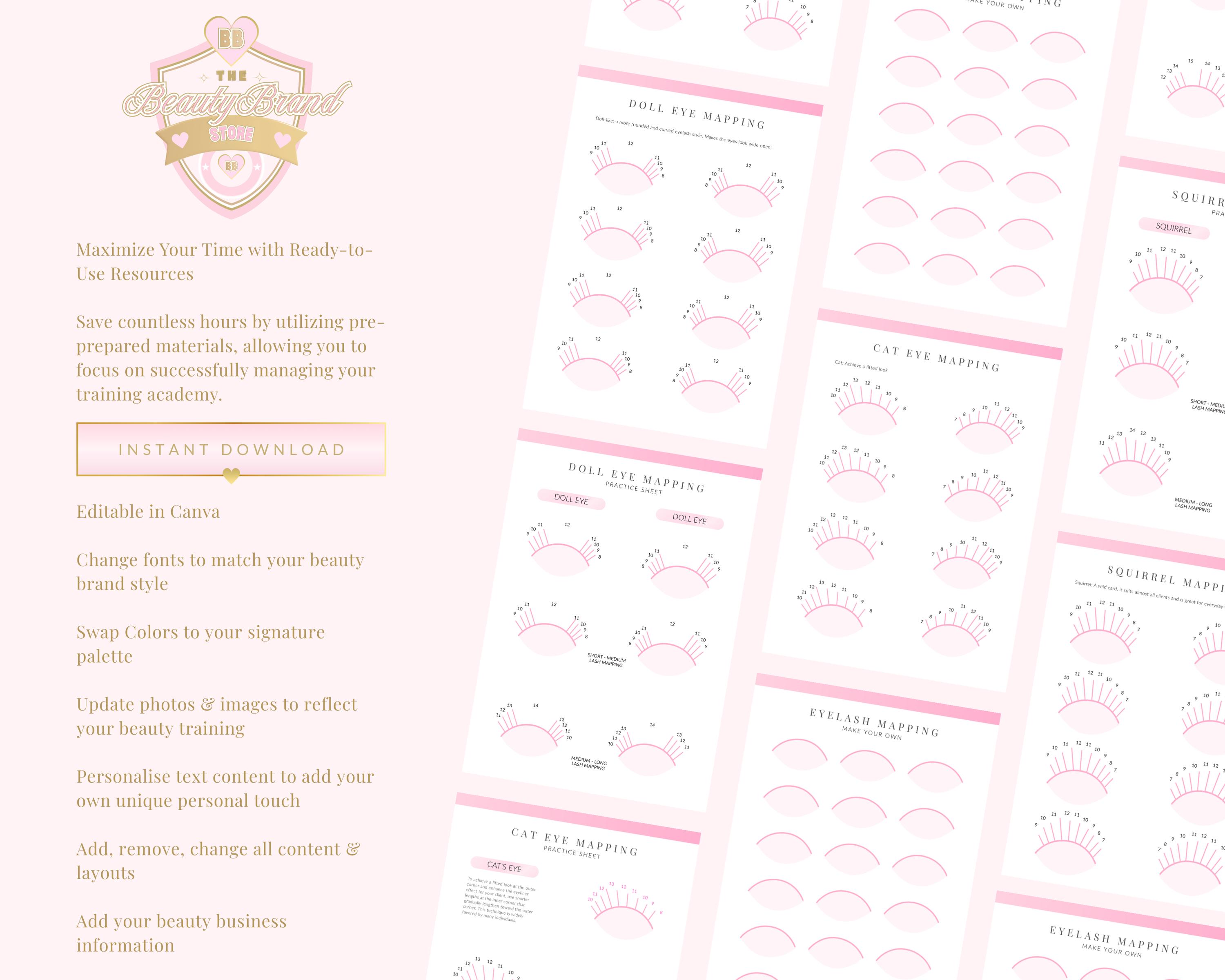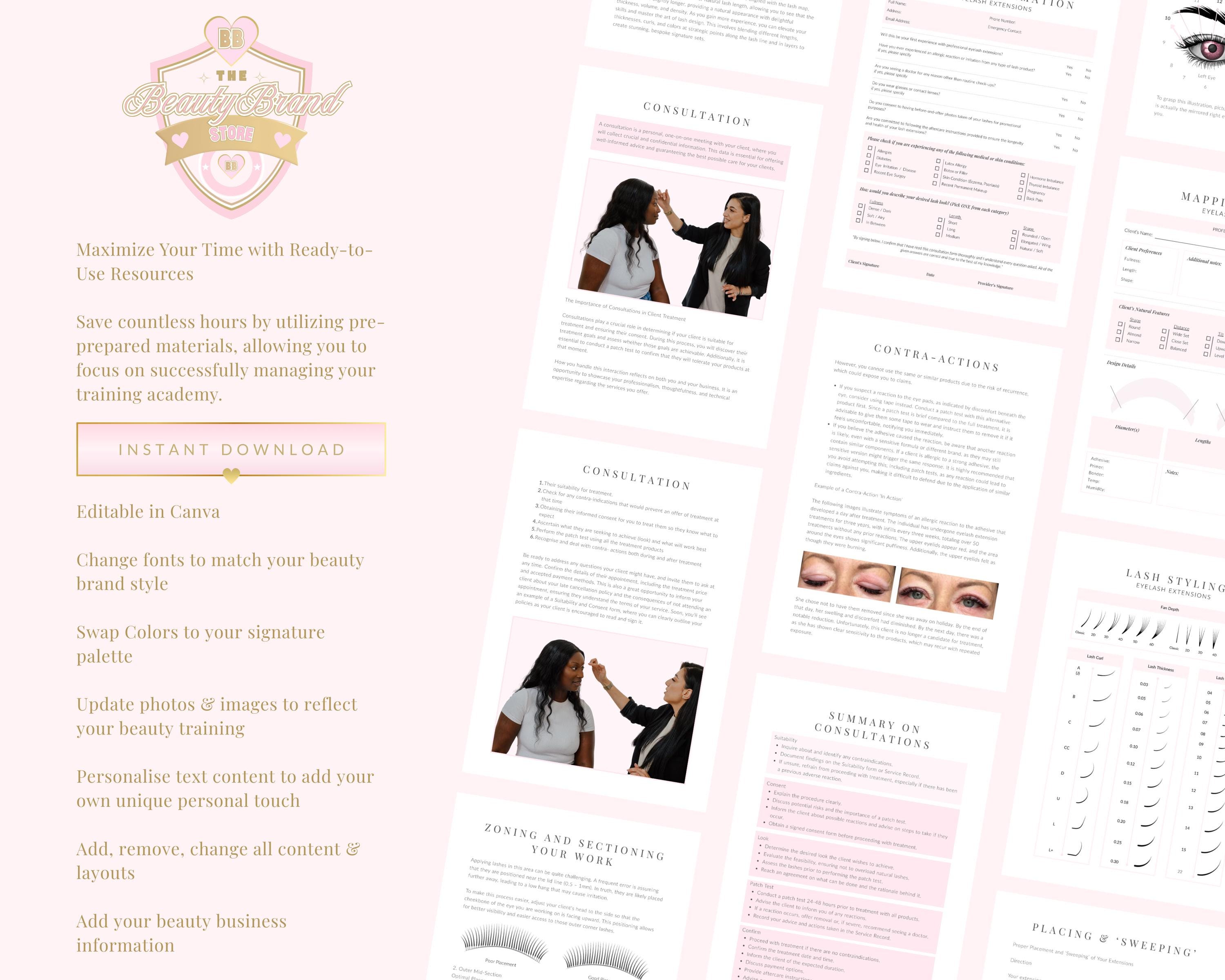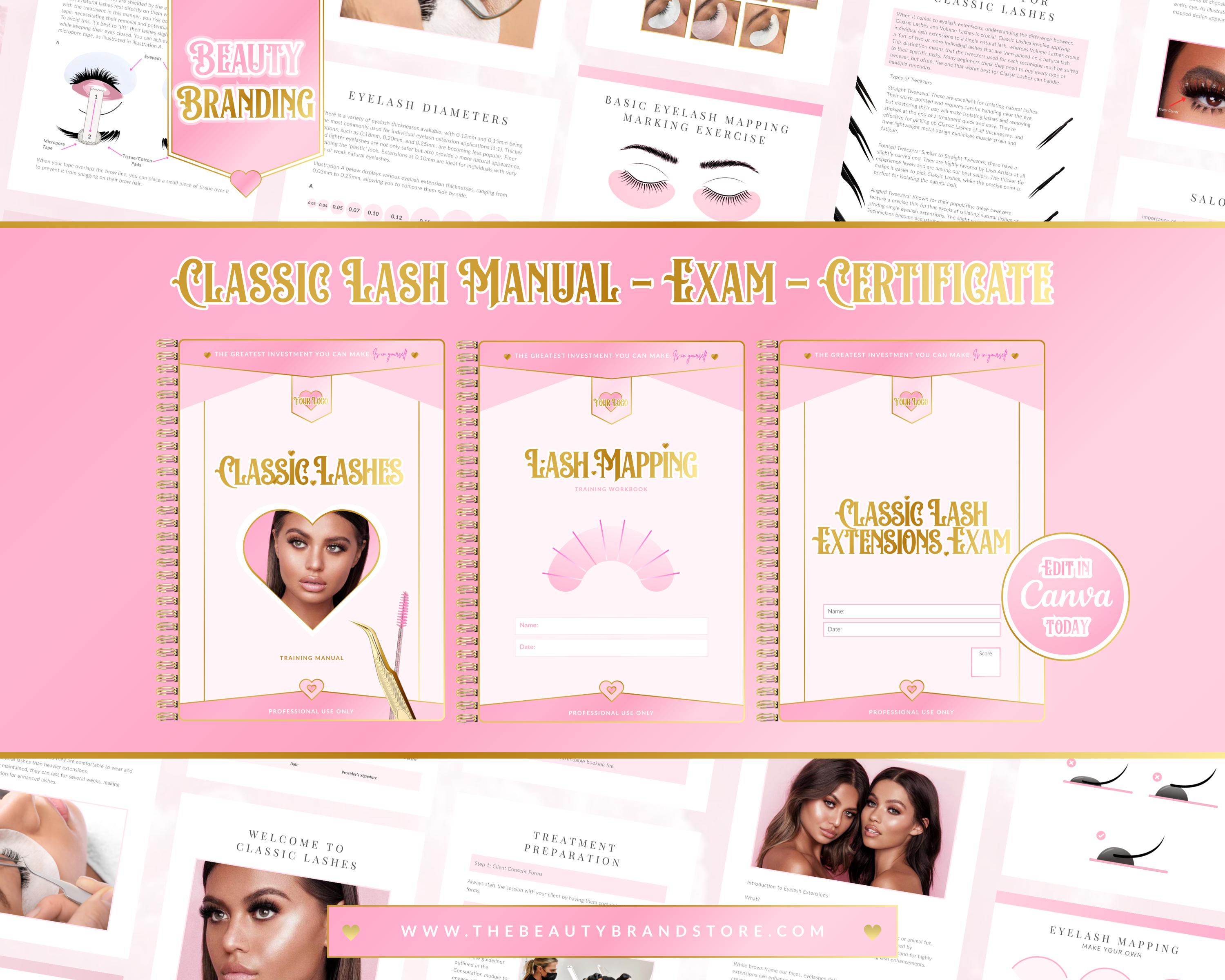 Training Academy Package including Eyelash Extensions Editable Training Manual, Lash Mapping Practice Workbook & Classic Lashes Theory Exam