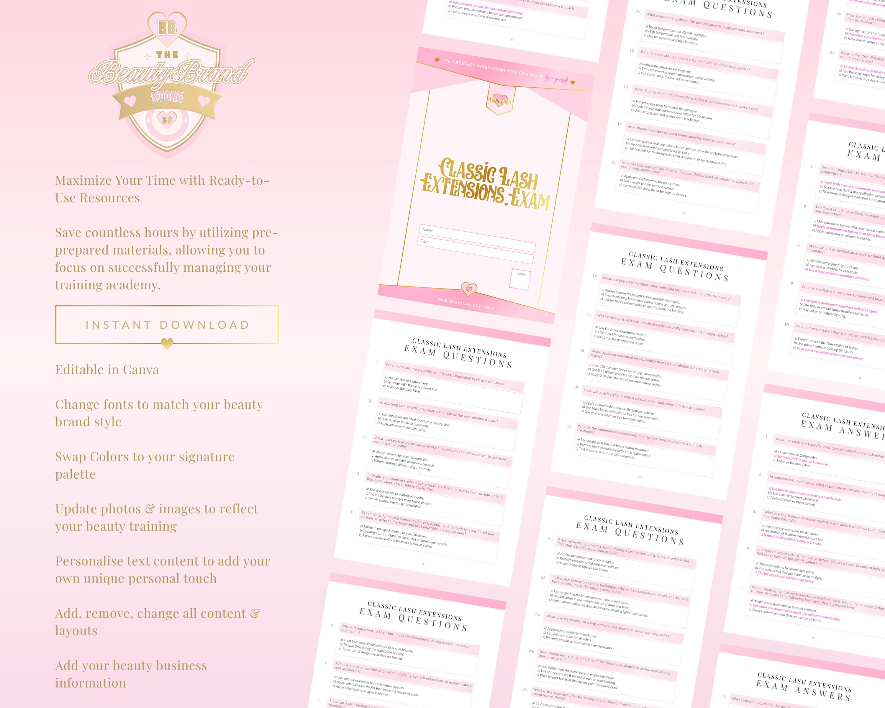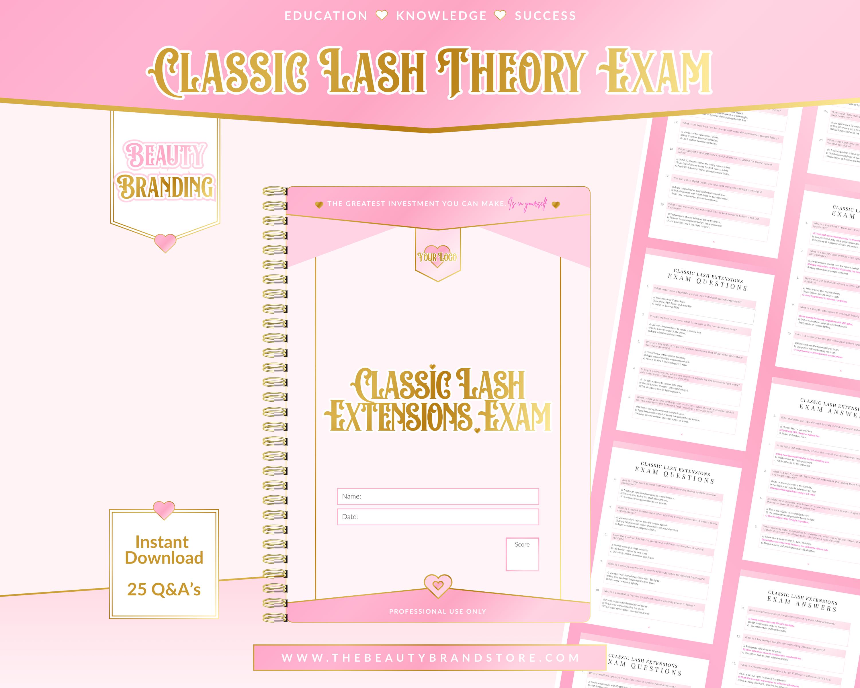 Editable Classic Lash Extensions Multiple Choice Theory Exam x25 Questions & Answers