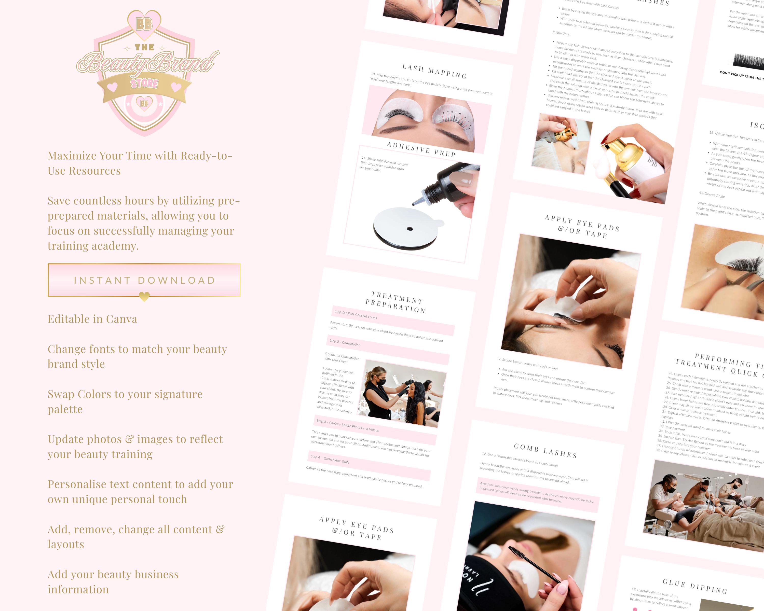 Editable Classic Lash Extensions Training Manual Template - 238 pages