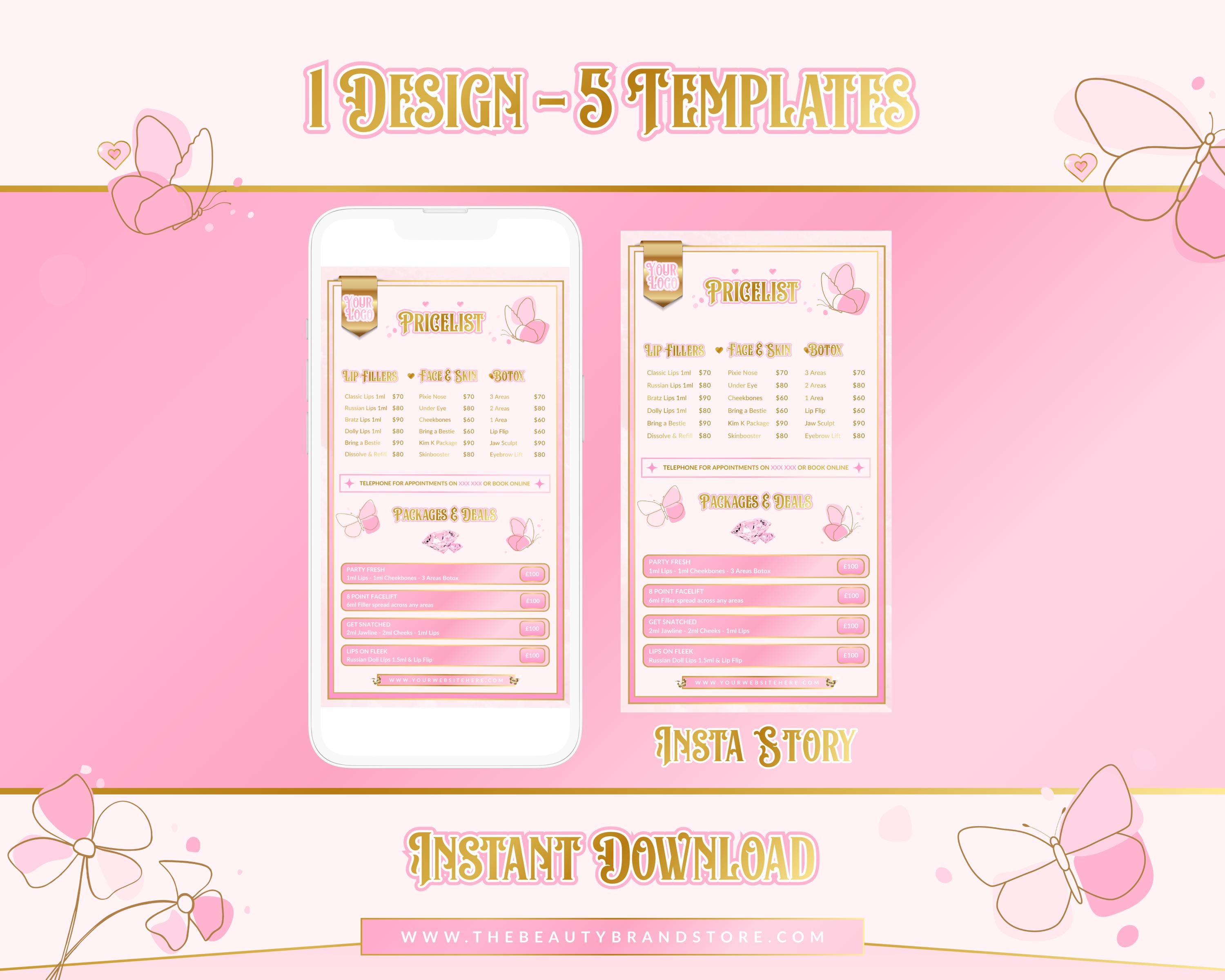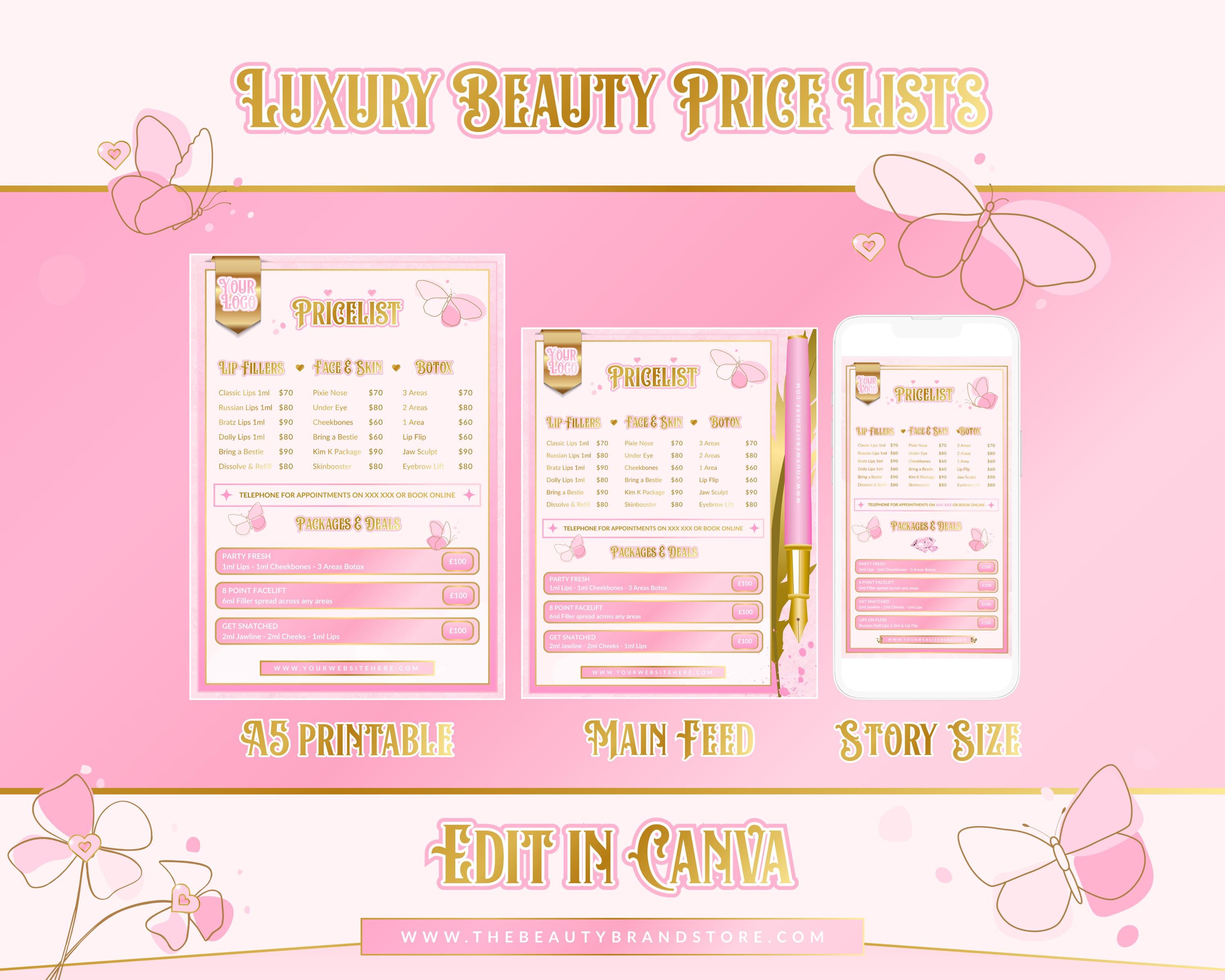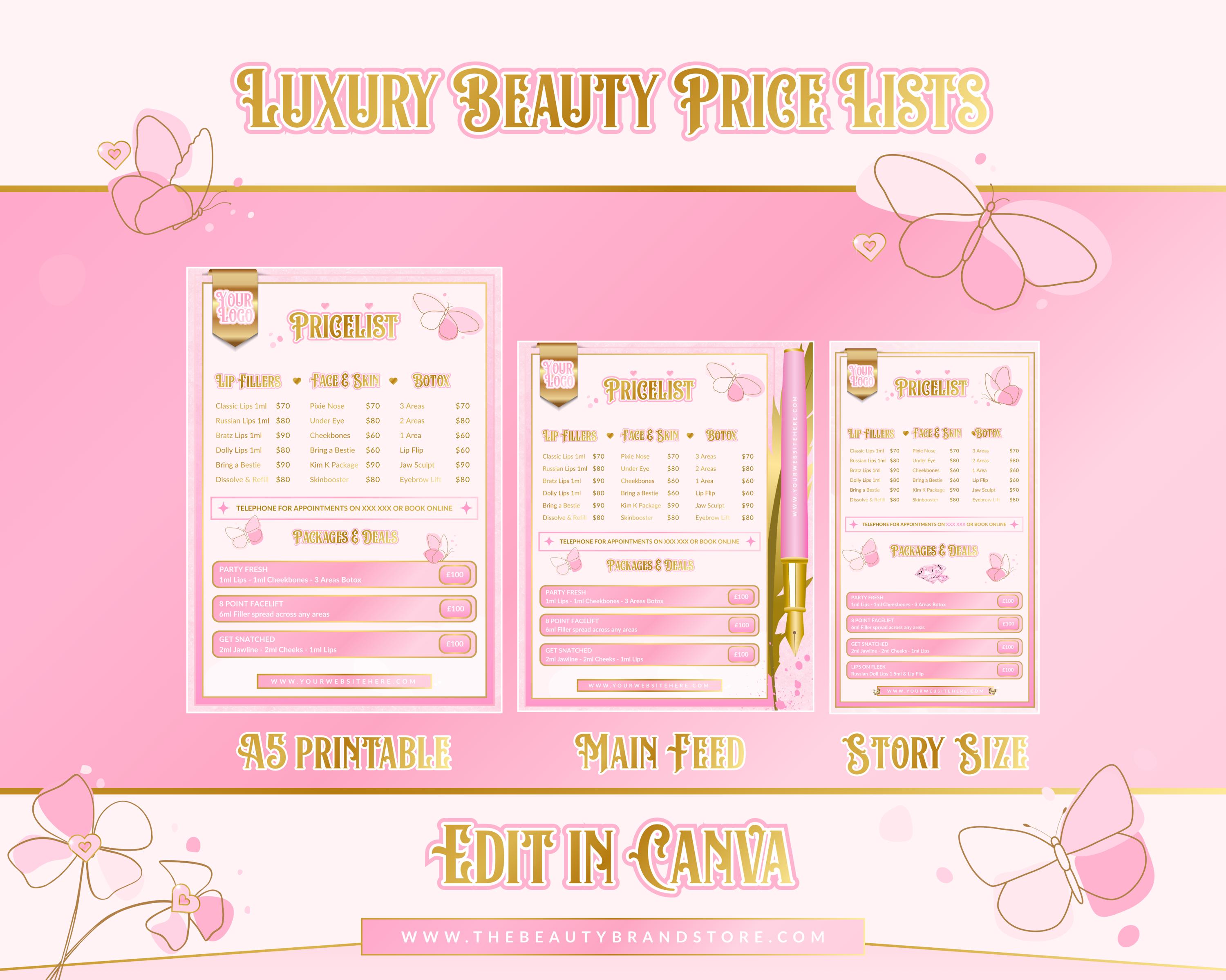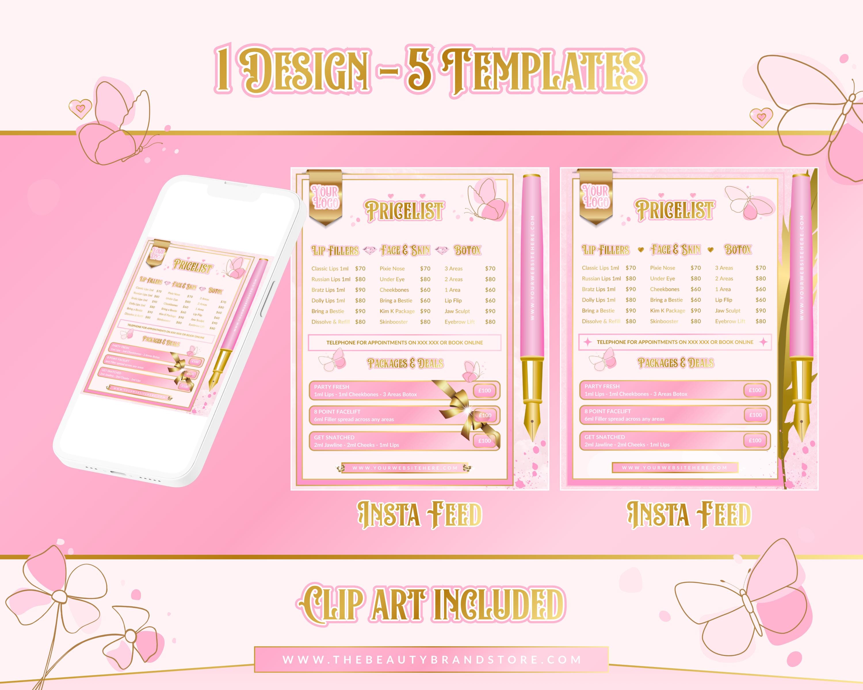 - This Price List Bundle is a crucial element of your brand identity. Tap into your creative side by fully editing the design, or simply insert your information and upload it to your Main Feed, Story, or Printed Price List!