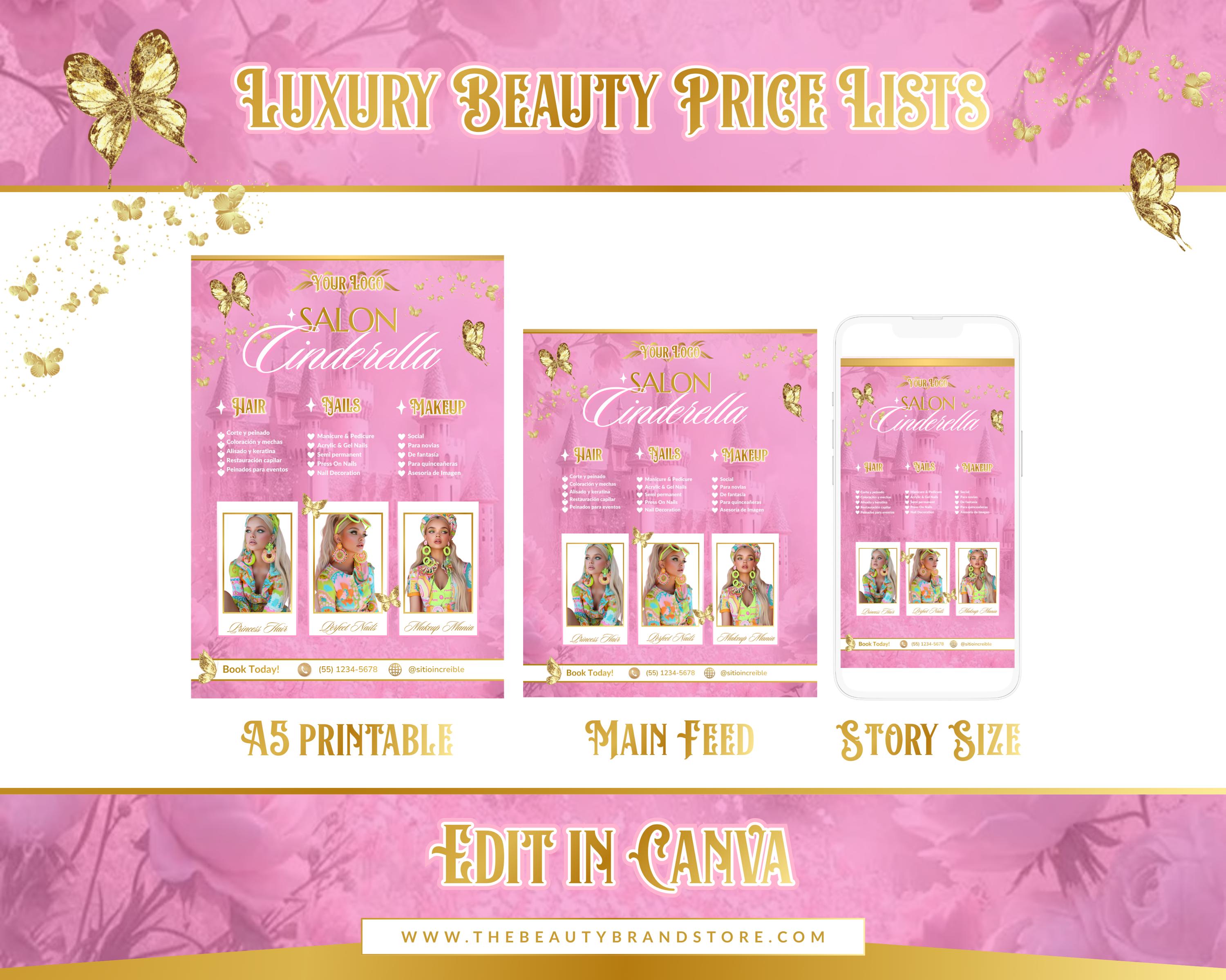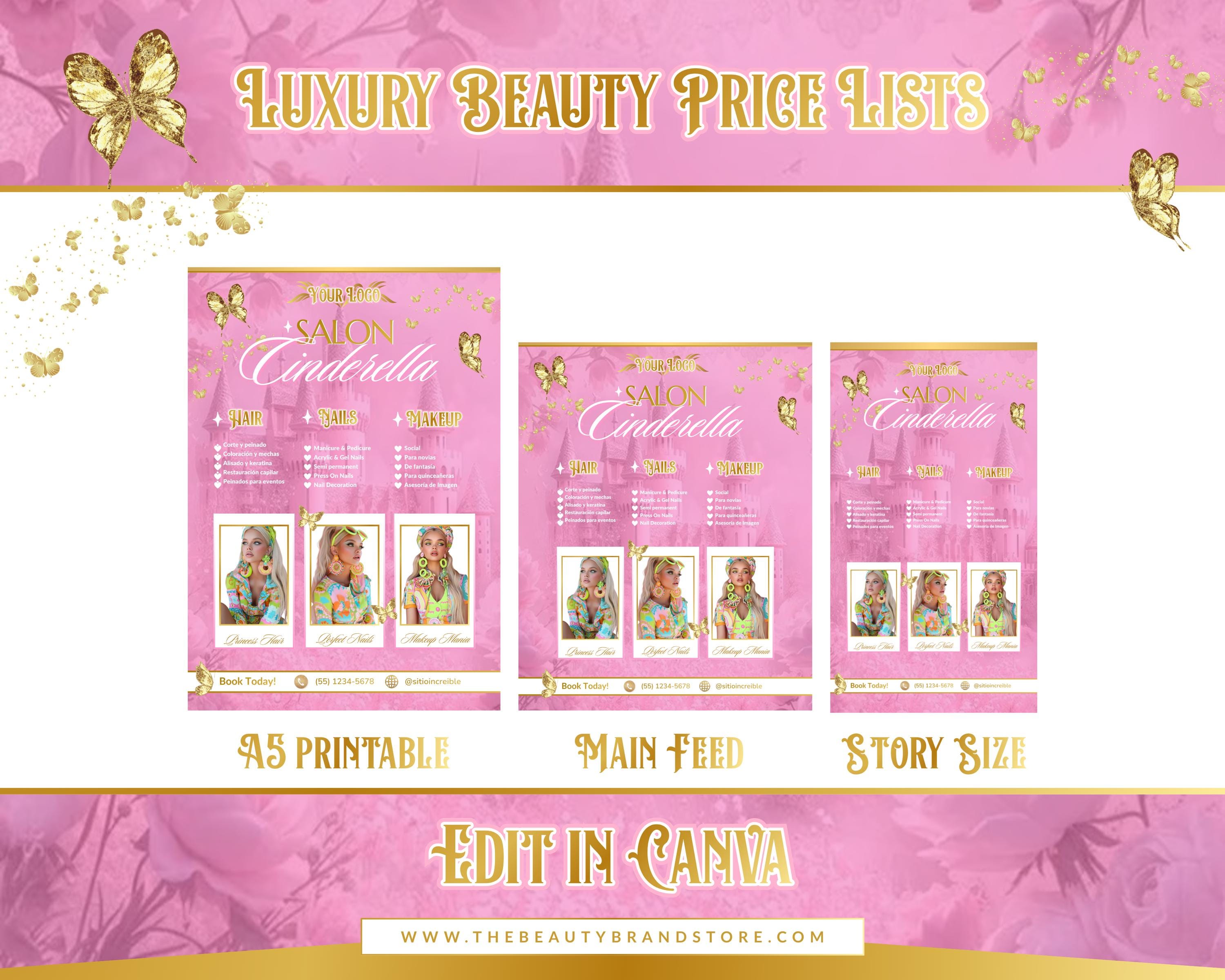 Beauty Salon Price List Template, Editable in Canva (Digital Download)