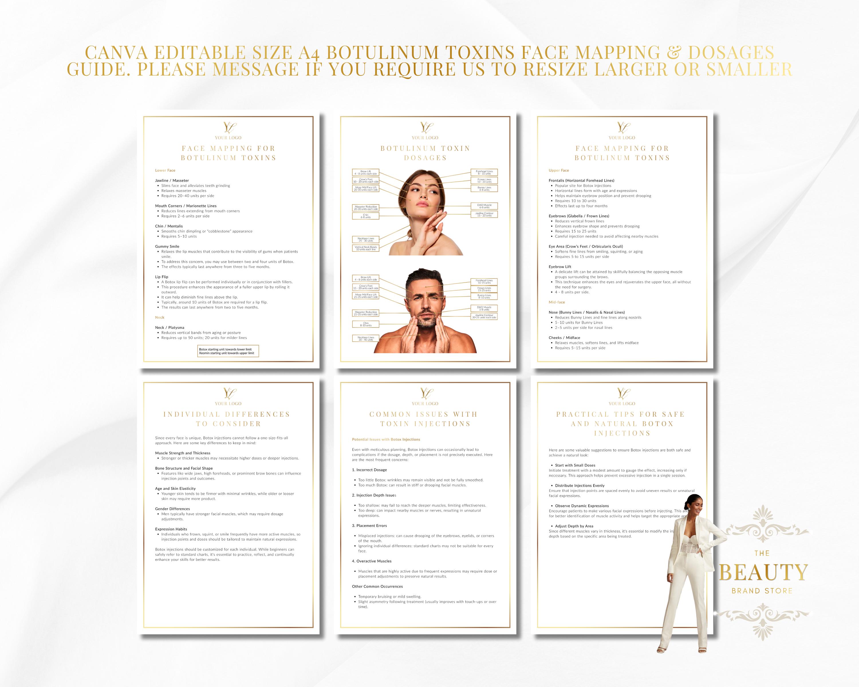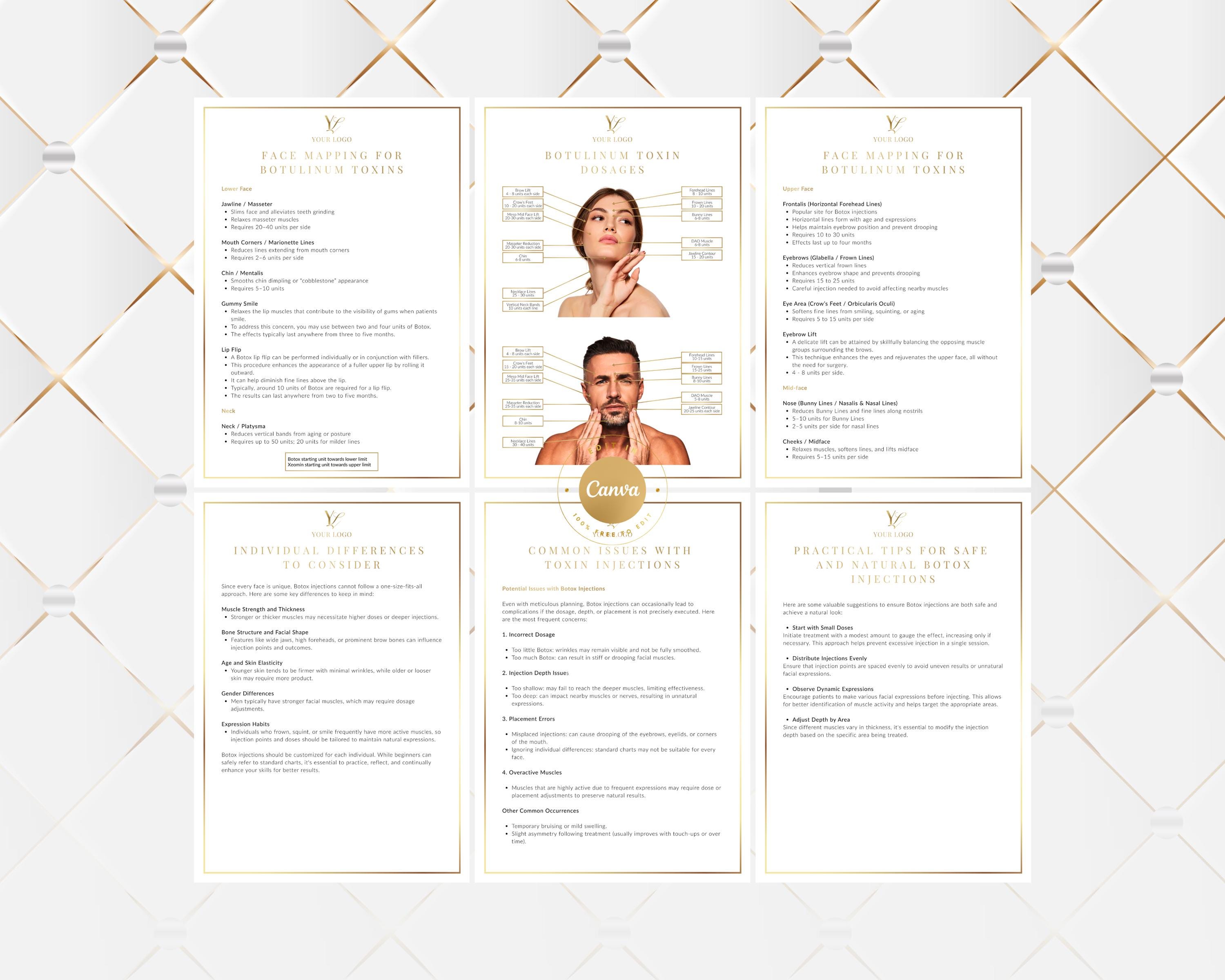 Editable Botulinum Toxins (Botox) Guide, Neurotoxins Face Mapping and Dosage Instructions, Botox & Xeomin Cheat Sheets x6 Documents