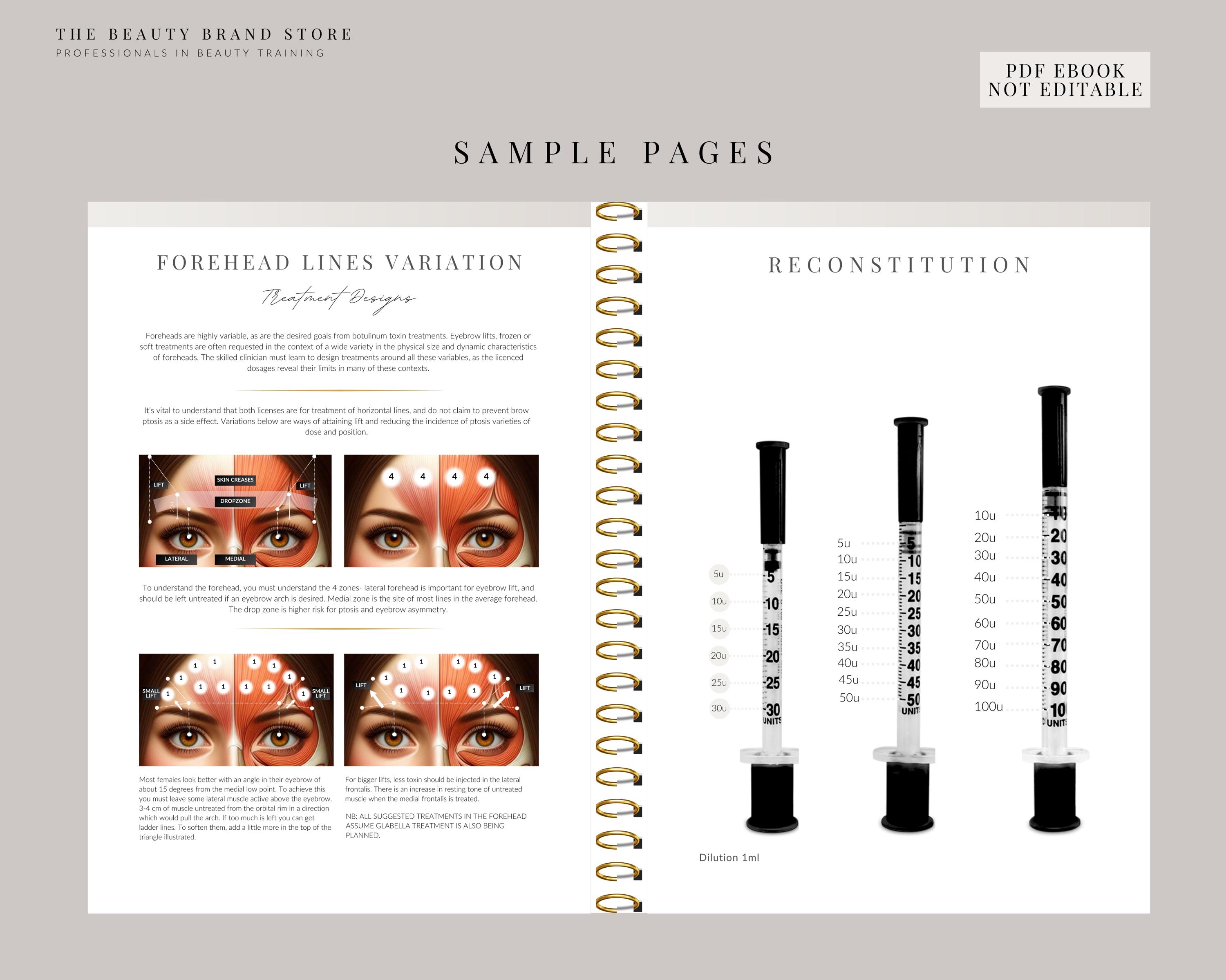 If you have you been searching for professional business guides for Botox injection then this handy training booklet is ideal for you! For DIY personal use. Let us teach you the basics of facial anatomy for injections, products required, techniques, mapping and patterns. The guide covers the essential botulinum toxins patterns with detailed explanations. Also included is Reconstitution and Dosage Cheat Sheets as well as product information on toxins, needles, syringes, injection depths, where to purchase toxins and recommended toxins.