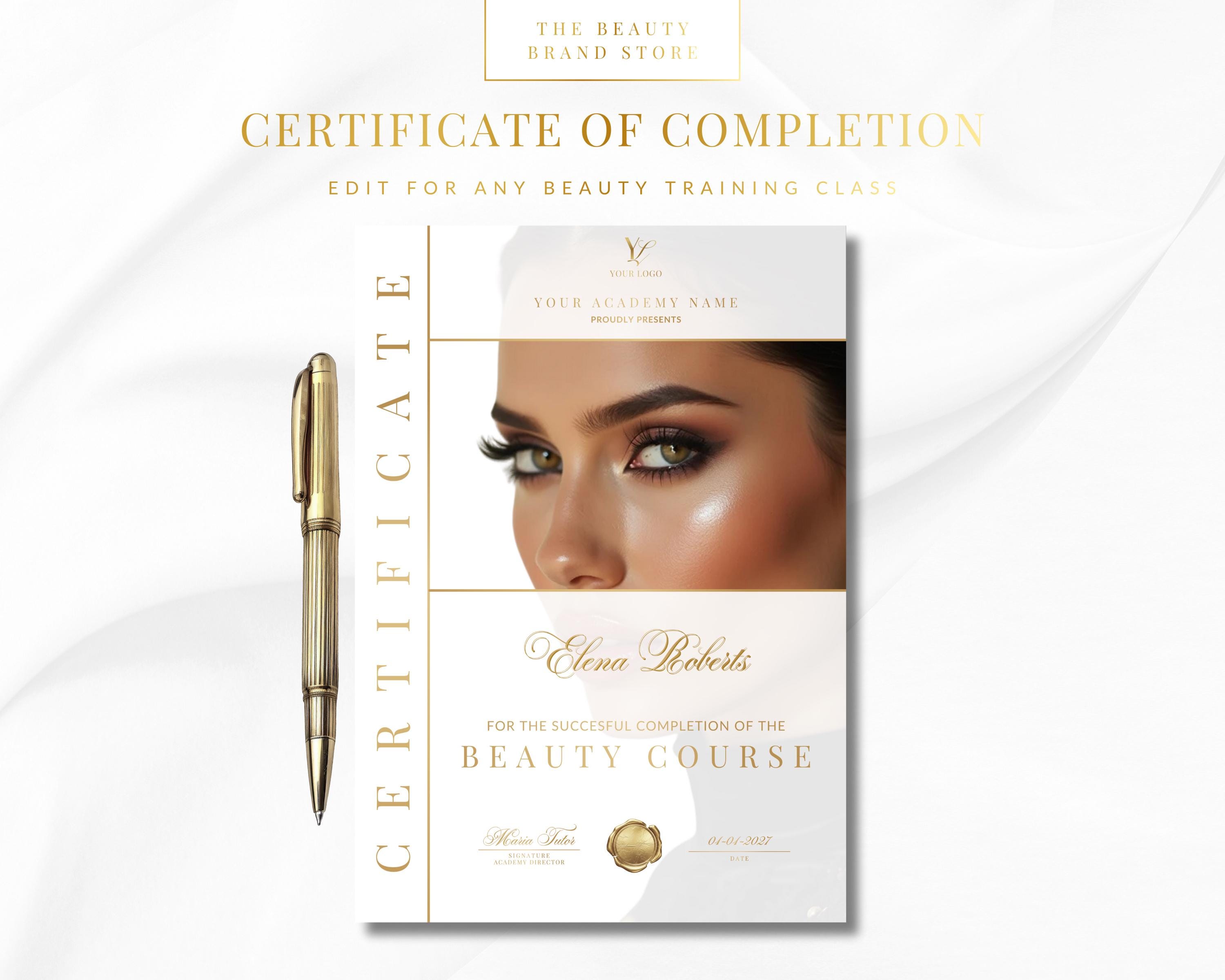Certificate of Completion for Any Beauty, Hair, Nails, Aesthetics Training Course Certification, Editable Canva Template