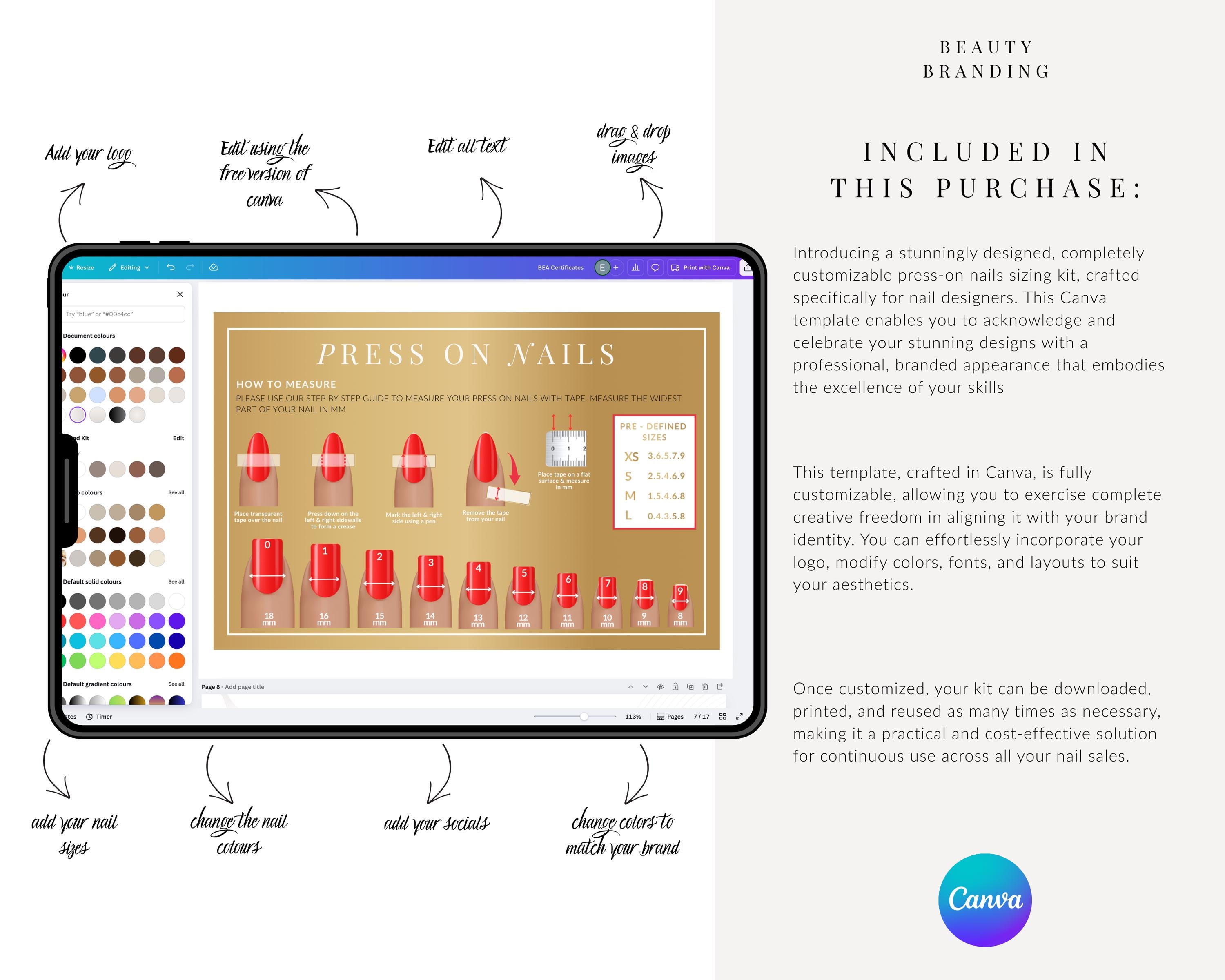Elevate your brand with our sleek and professional templates designed specifically for showcasing press-on nail branding. These customizable product card templates make it effortless to present your nail business, ensuring they capture the attention of your customers.