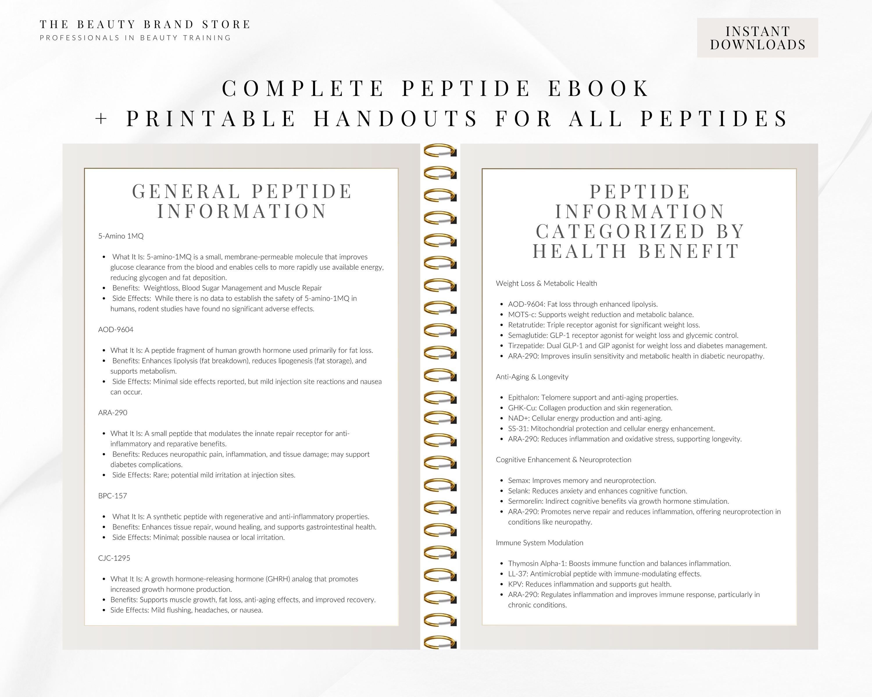 A to Z of Therapeutic Peptides, Ultimate Peptide Protocols Booklet, Medspa Patient Documents inc Dosage, Individual Handouts or eBook