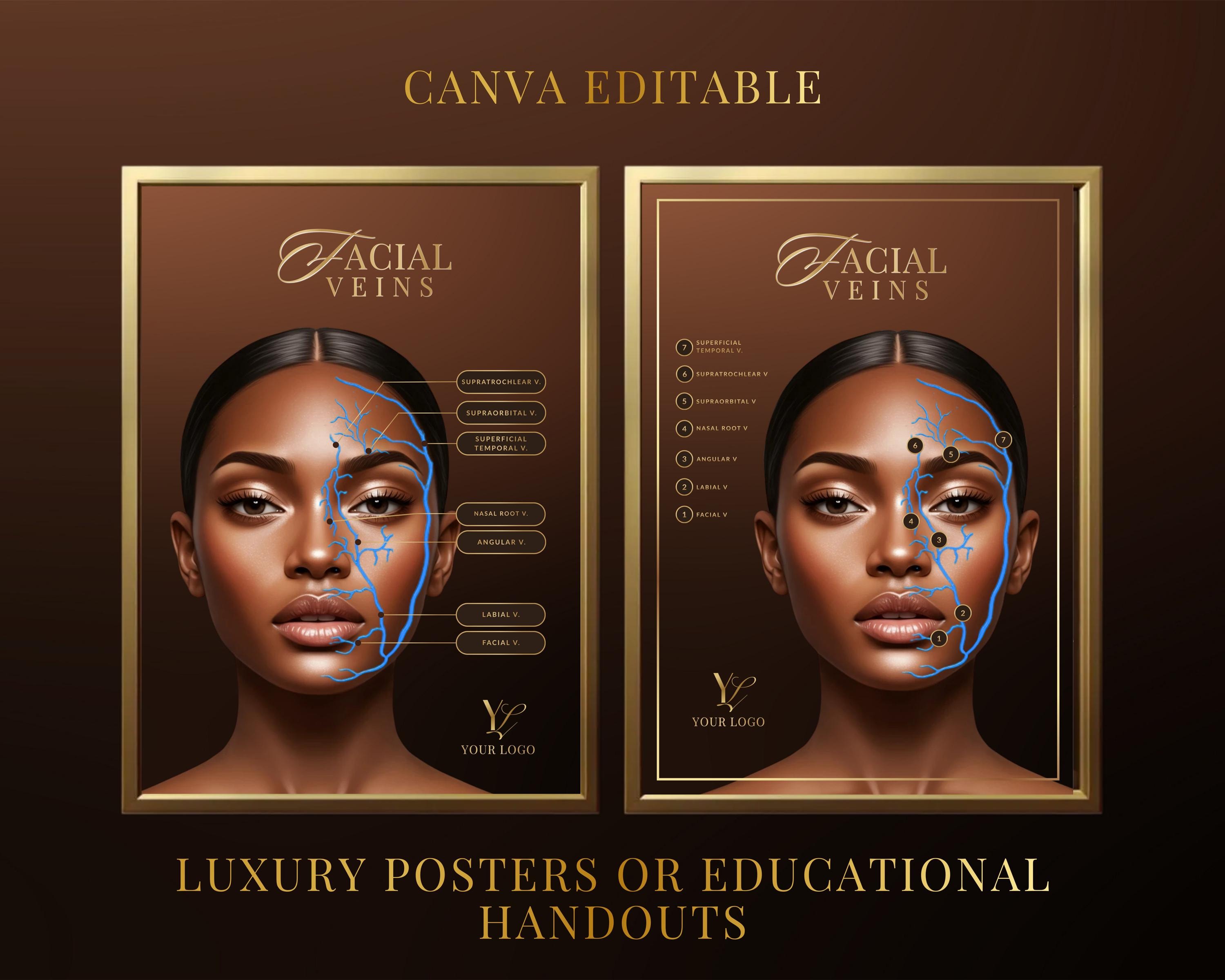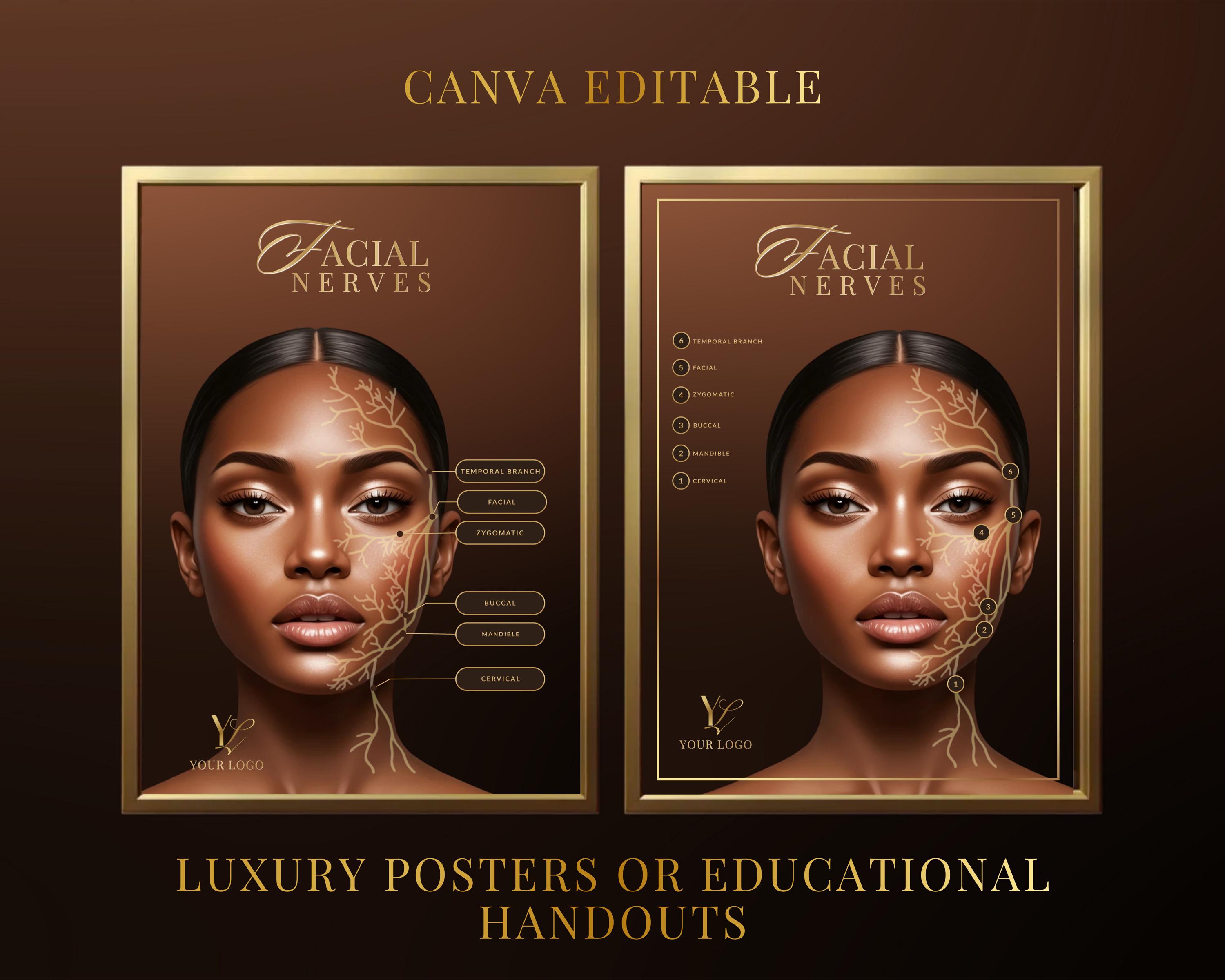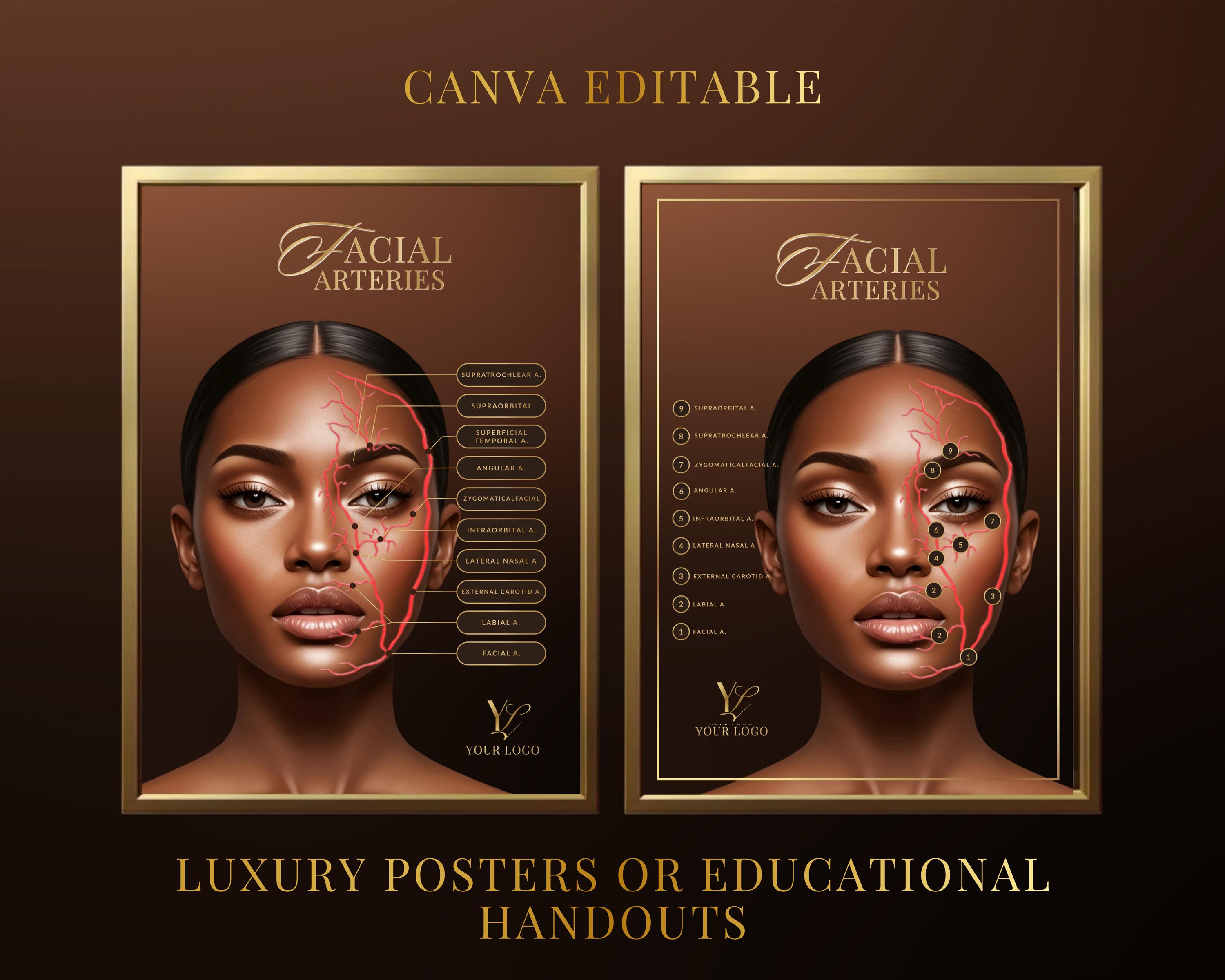 Facial Anatomy Print Set, Muscles, Arteries, Veins, Nerves, Skull (Editable Canva Template Digital Download A4 & A2)