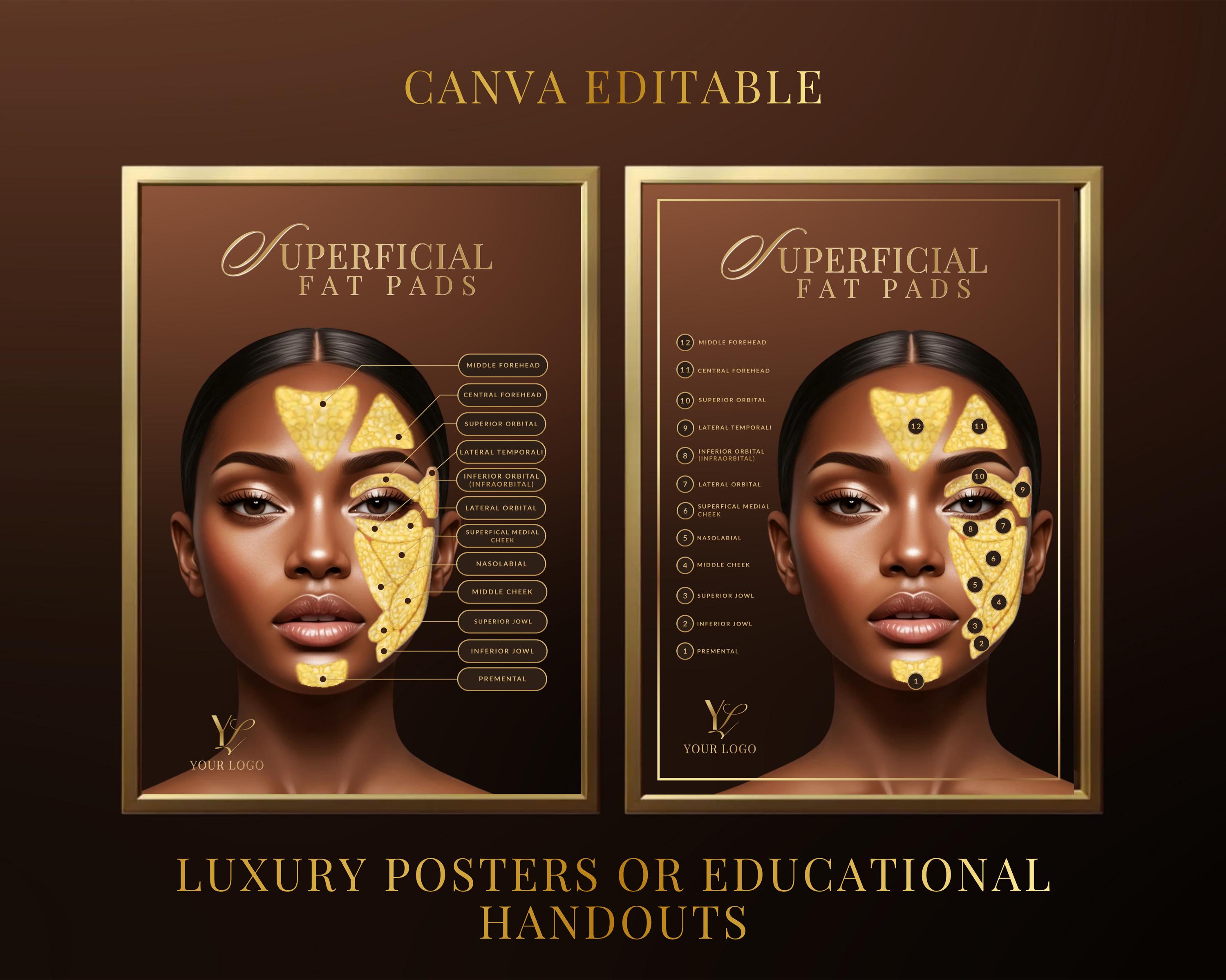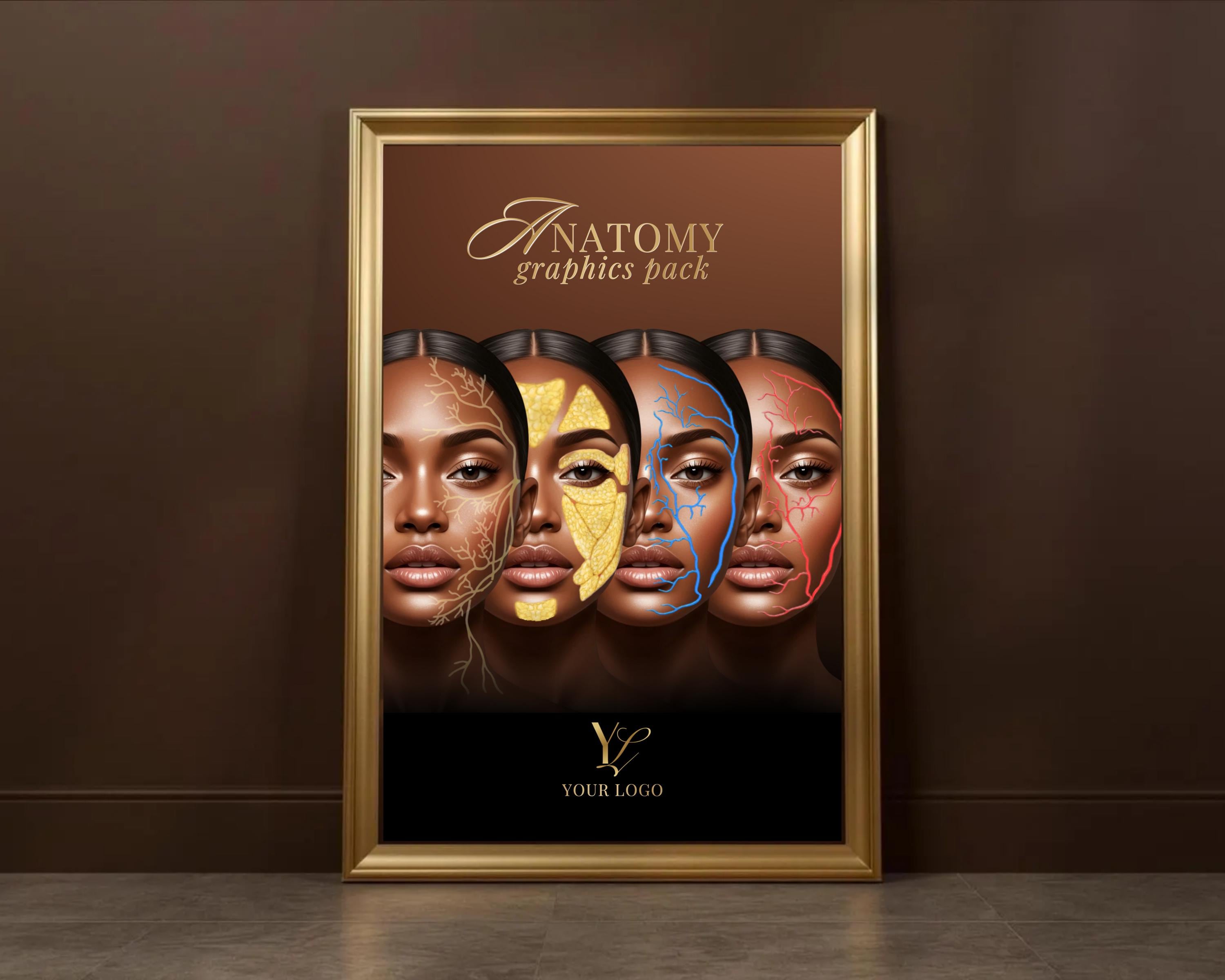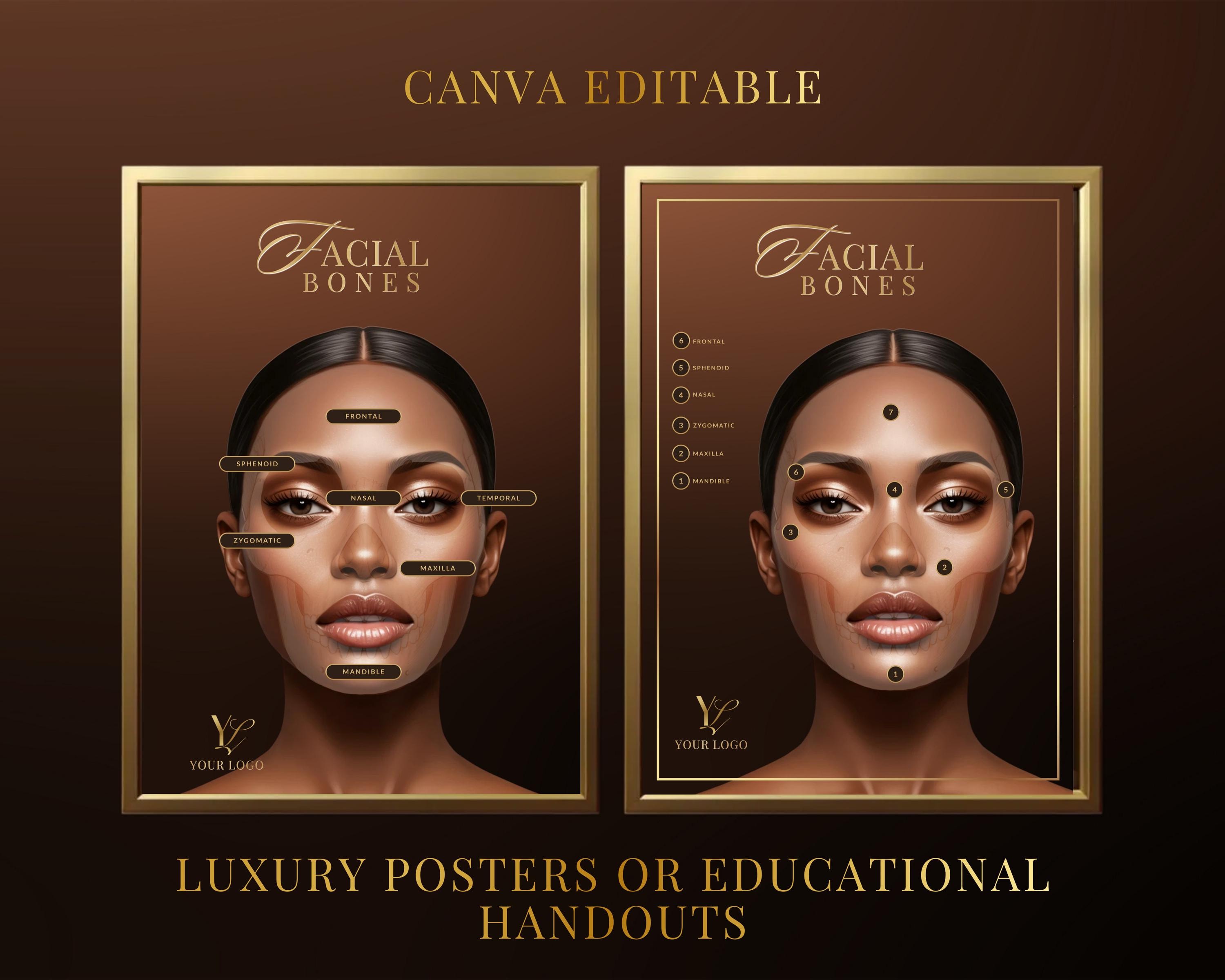 Facial Anatomy Print Set, Muscles, Arteries, Veins, Nerves, Skull (Editable Canva Template Digital Download A4 & A2)