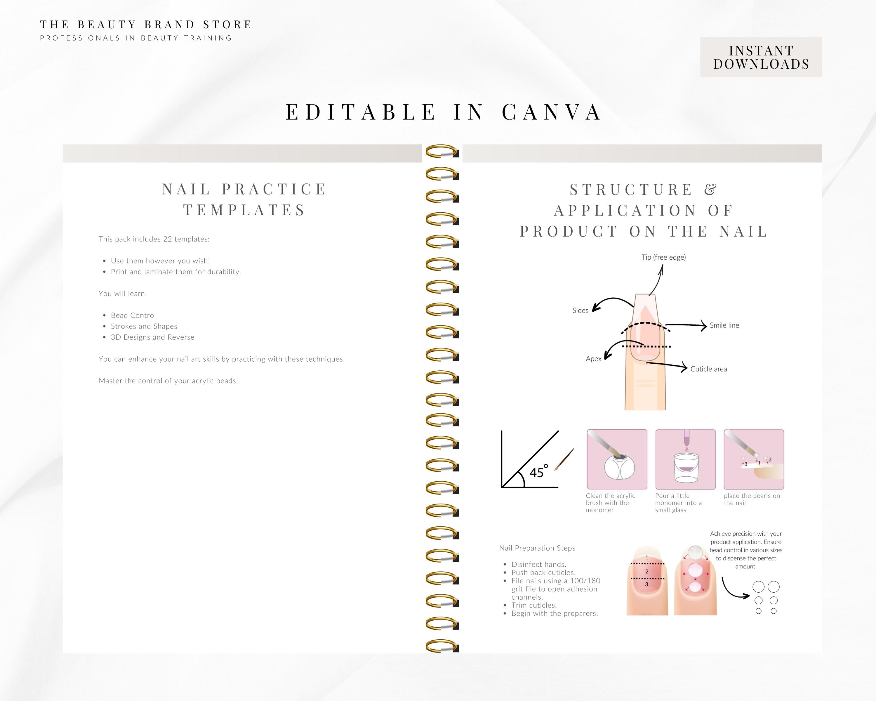 Nail Practice Templates | Bead Control & Nail Art | Editable Canva eBook | Instant Download | Nail Artist Training