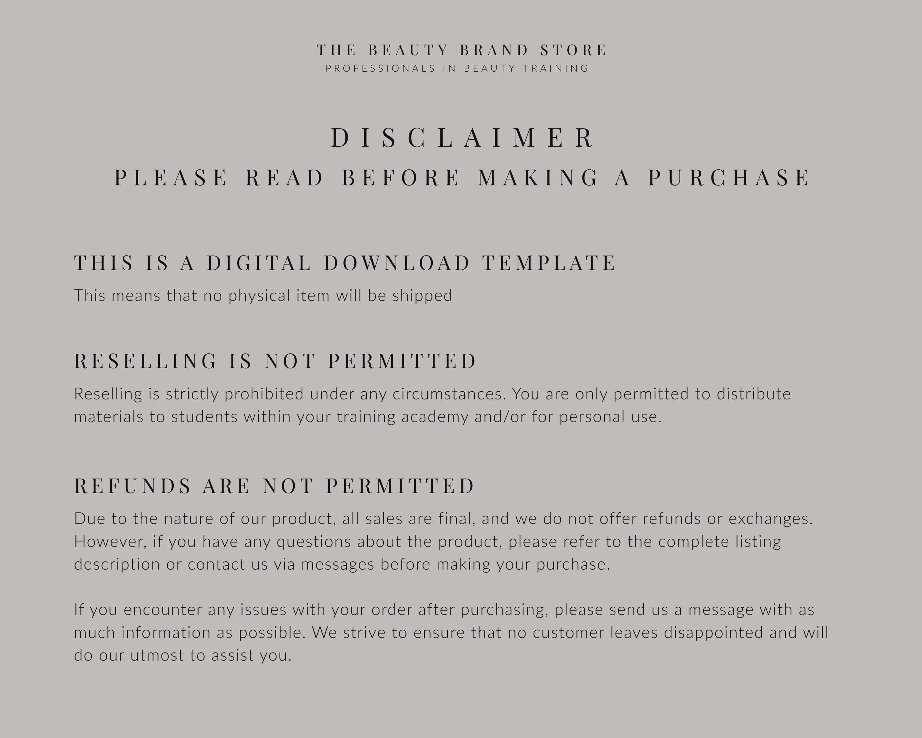 Copyright © 2026-2027 The Beauty Branding Store. All rights reserved. The materials and graphic design elements are protected under copyright laws and are registered with unique reference numbers. Reproduction or resale of these materials in any form is strictly prohibited. The materials are intended for personal use and as training resources only. Any detected infringements will be prosecuted under copyright law.