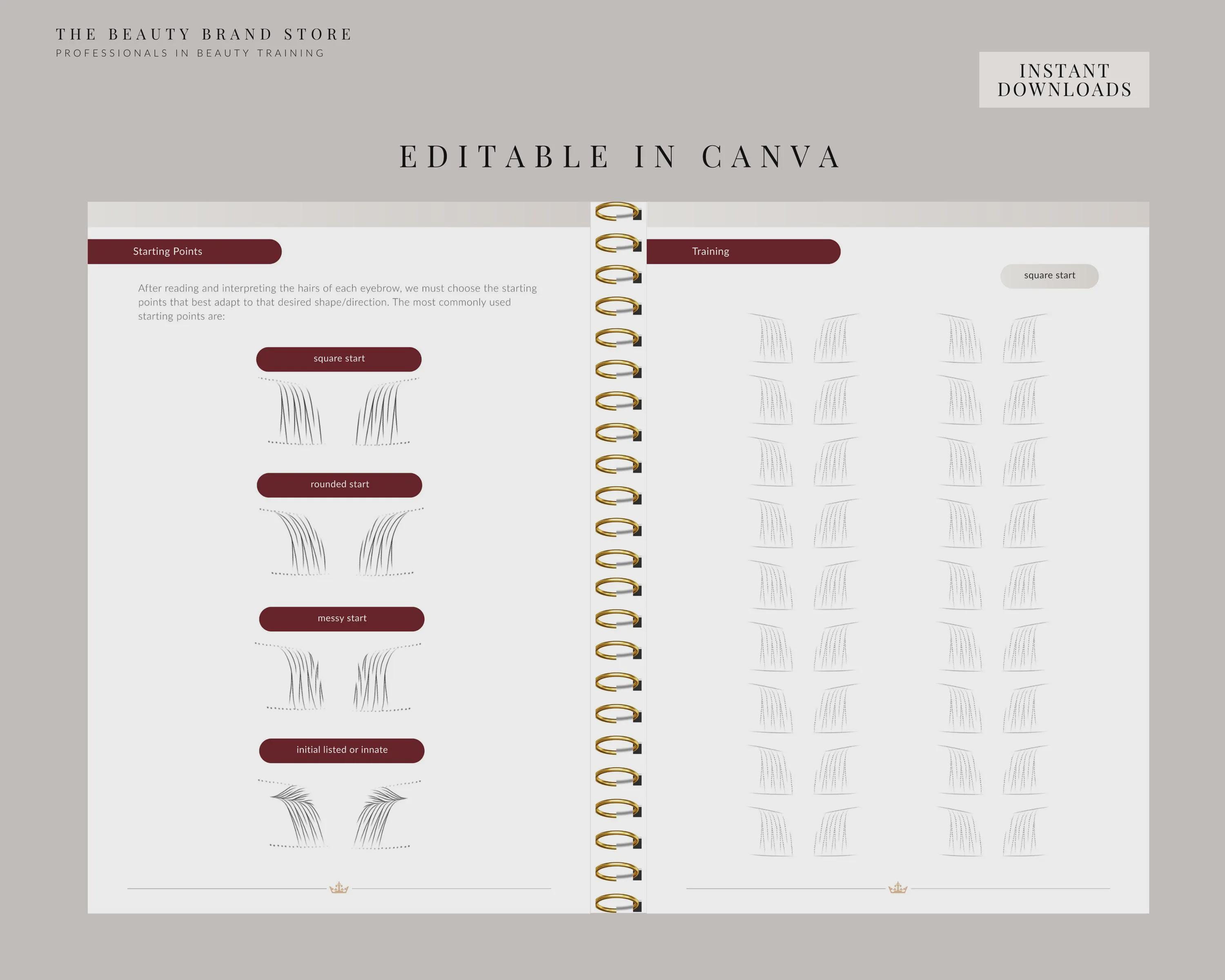 Revolutionize your training academy with our premium, customizable beauty training materials, meticulously designed for beauty trainers, academies, and professionals. Our fully editable Canva templates represent the ideal solution for creating professional, high-quality training documents, including manuals, worksheets, exams, and certificates. Each resource is easy to modify, instantly downloadable, and ready for personalization, enabling you to save time while presenting a polished and professional brand image.
