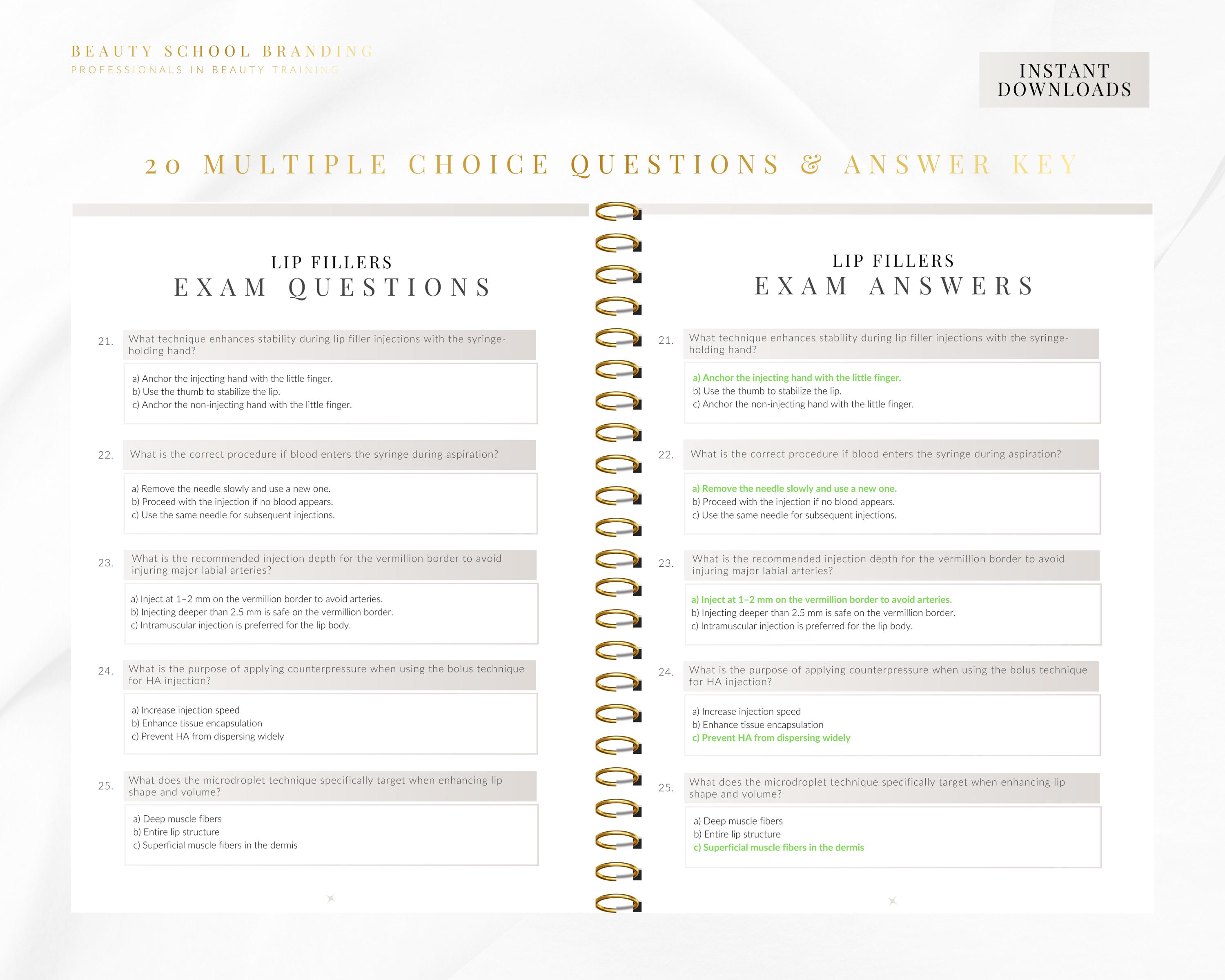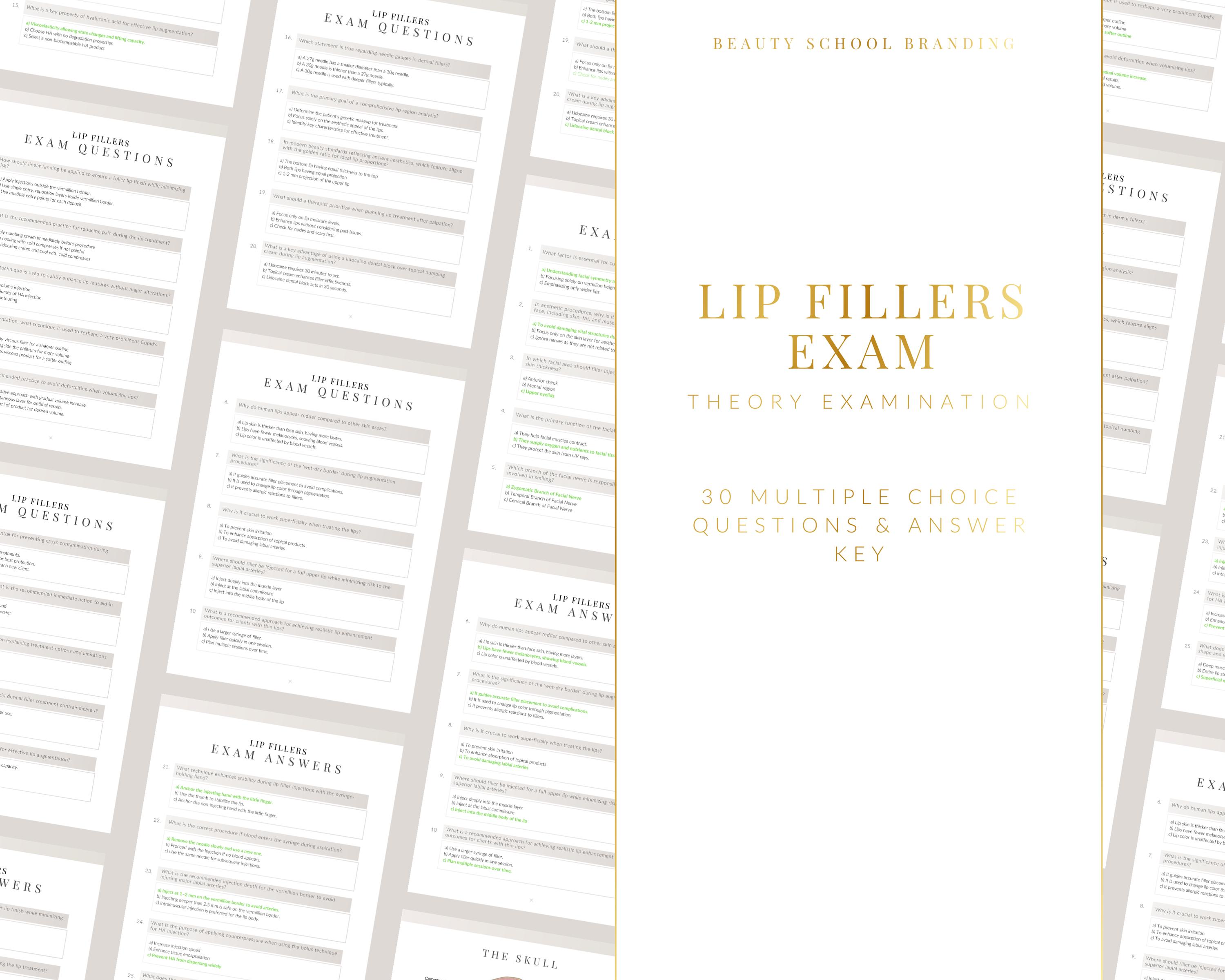 Editable Lip Fillers Theory Exam inc x30 Multiple Choice Questions